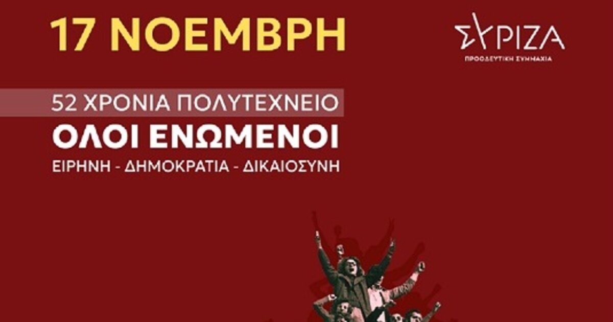 Κάλεσμα του ΣΥΡΙΖΑ σε συγκέντρωση για την επέτειο του Πολυτεχνείου