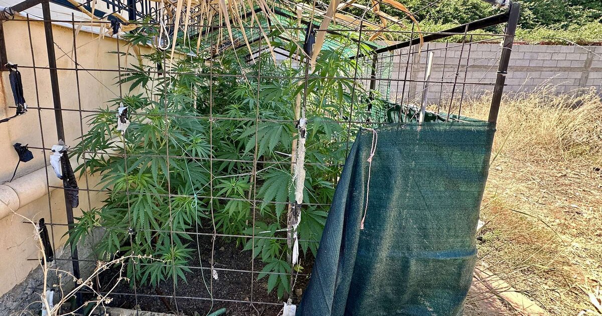 Επιπλέον, σε περιβάλλοντα χώρο της οικίας βρέθηκε φυτεία κάνναβης εντός μεταλλικής περίφραξης, αποτελούμενη από 18 δενδρύλλια.