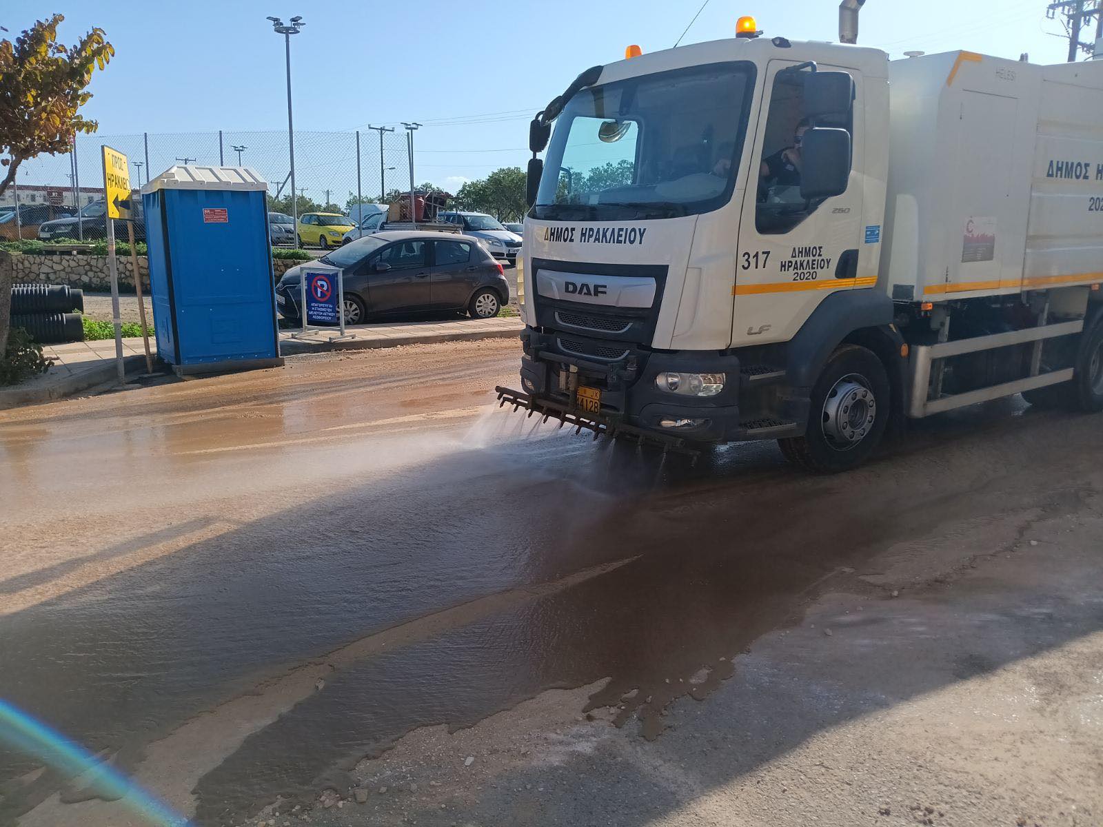 Νωρίς το μεσημέρι είχε ολοκληρωθεί από την Υπηρεσία Καθαριότητας του Δήμου Ηρακλείου, ο καθαρισμός του δρόμου που το Σάββατο είχε στρωθεί με χώμα και πριονίδι. Στο σημείο βρίσκεται και τεχνικό συνεργείο της πολεμικής αεροπορίας για την αποκατάσταση της ζημιάς στον αγωγό. Αναφορικά με την απόδοση του δρόμου στην κυκλοφορία, τον λόγο έχει η Τροχαία.