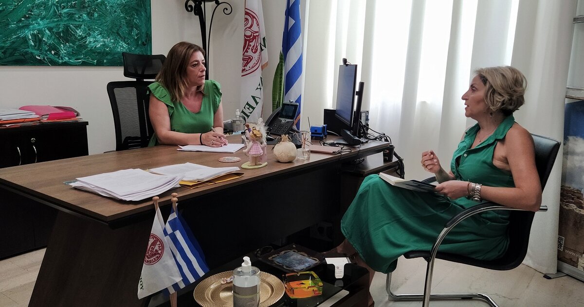 Συνάντηση για θέματα που άπτονται των αρμοδιοτήτων τους, είχαν οι Αντιδήμαρχοι Διοικητικών και Οικονομικών Υπηρεσιών Μαρία Καναβάκη και Εθελοντισμού, Οργάνωσης και Ολοκληρωμένης Διαχείρισης Επιπτώσεων Κατάστασης Έκτακτης Ανάγκης Δέσποινα Συγγελάκη, το πρωί της Τρίτης 19 Ιουλίου.