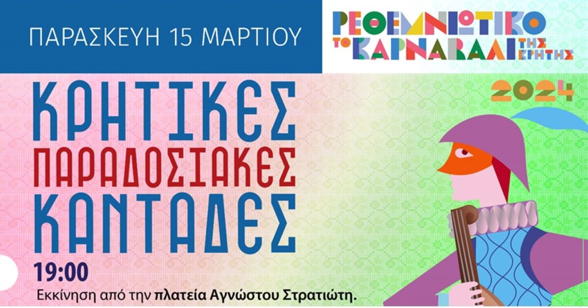 Στην κορύφωση του οδηγείται το Ρεθεμνιώτικο Καρναβάλι 2024 και οι Κρητικές Καντάδες είναι η επόμενη εκδήλωση που καλεί μικρούς και μεγάλους, λάτρεις της κρητικής παράδοσης, να γίνουν ΜΙΑ ΠΑΡΕΑ και να σεργιανίσουν με λύρες, λαγούτα και μαντινάδες στους δρόμους της πόλης του Ρεθύμνου!