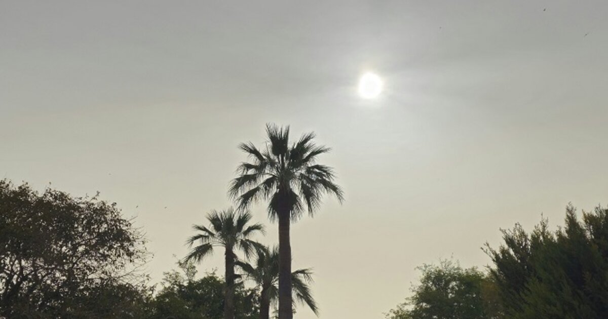 "Πρωινό Παρασκευής 17/05 στην Κρήτη. Στη φωτογραφία, του φίλου Leandros Simeonidis βλέπουμε τον ουρανό στο κέντρο των Χανίων, ενώ στο διάγραμμα από το σταθμό μας στην Αργυρούπολη Ρεθύμνου, την απότομη αύξηση της θερμοκρασίας από τους 19 στους 30 βαθμούς μέσα σε 90 λεπτά!"