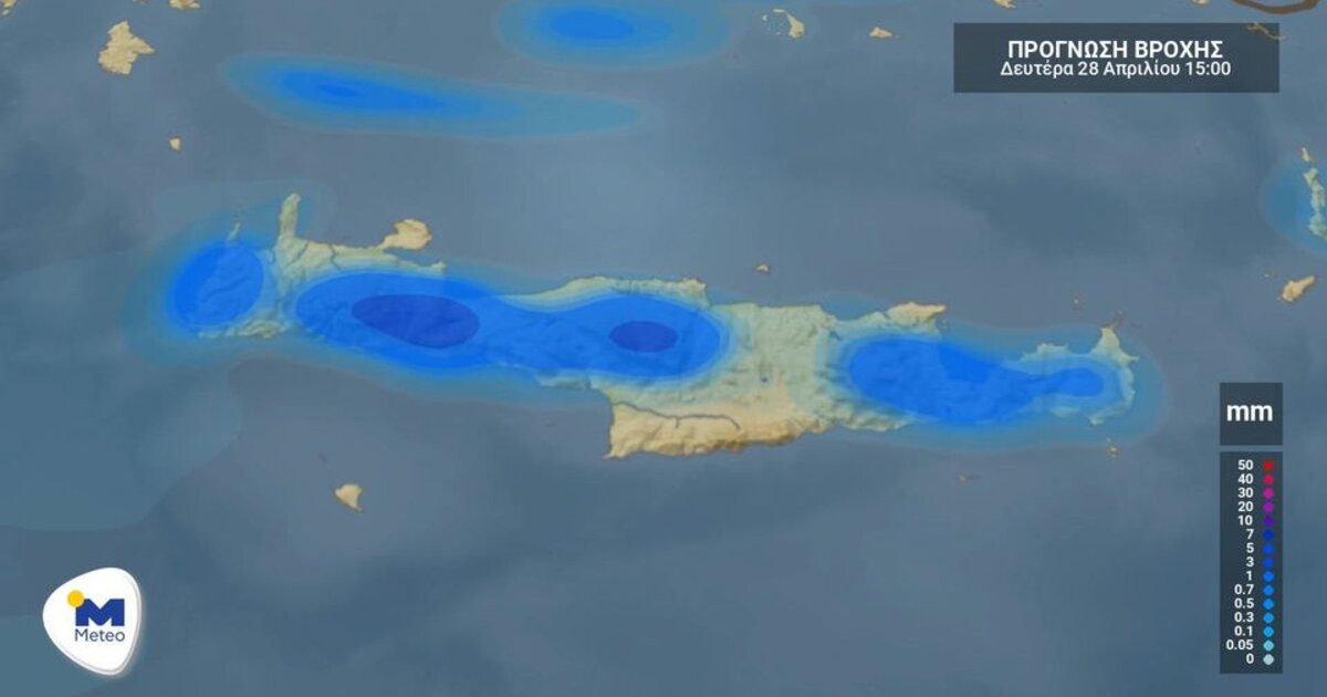 Νεφώσεις κατά τόπους αυξημένες με τοπικές βροχές και μεμονωμένες καταιγίδες αναμένονται την Δευτέρα στην Κρήτη, με τα φαινόμενα μετά το απόγευμα να περιορίζονται τοπικά.