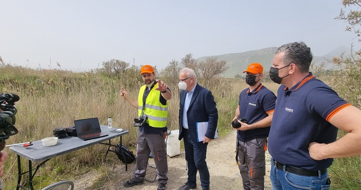 Πραγματοποιήθηκε ψεκασμός από αέρος με χρήση drone στην εκβολή του Αλμυρού ποταμού, στο Δήμο Μελεβιζίου,