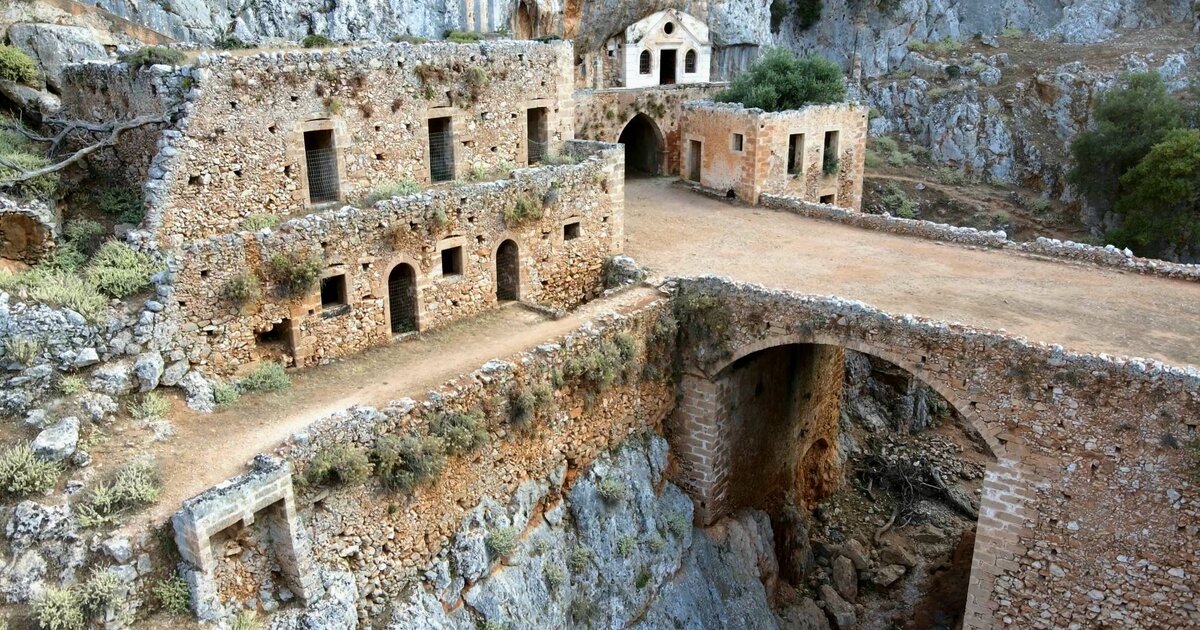 Στη συνέχεια της διαδρομής το μονοπάτι γίνεται πιο δύσκολο και το τοπίο πιο άγριο. Μετά από άλλα 10 λεπτά περπάτημα συναντάμε το εγκαταλελειμμένο Καθολικό Μοναστήρι με τον υπόσκαφο ναό του Αγίου Ιωάννη του Ερημίτη που έζησε μέσα σε αυτό το όμορφο σπήλαιο τον 14ο αιώνα. Το σπήλαιο μήκους 151 μέτρων είναι διακοσμημένο με σταλαγμίτες και σταλακτίτες. Το μοναστήρι είναι χτισμένο ανάμεσα στις δύο άκρες του φαραγγιού, που ενώνονται με ένα όμορφο μονότοξο γεφύρι.