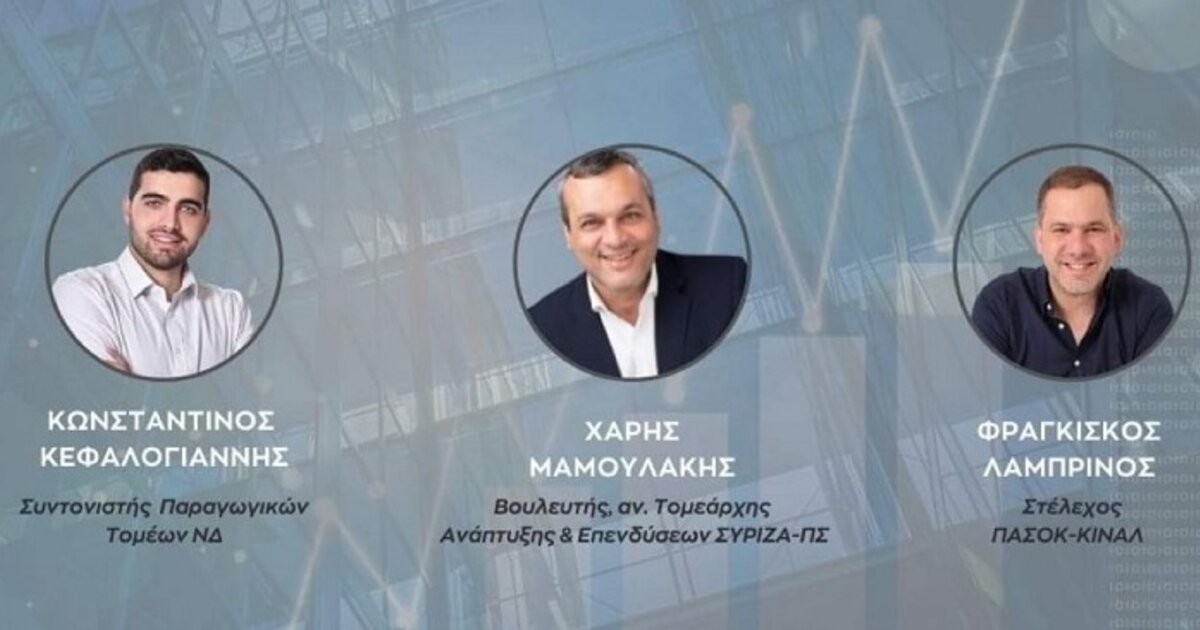 Ομιλητές στην εκδήλωση θα είναι ο Κωνσταντίνος Κεφαλογιάννης, Συντονιστής Παραγωγικών Τομέων της ΝΔ, ο Χάρης Μαμουλάκης, αναπληρωτής τομεάρχης ανάπτυξης και επενδύσεων ΣΥΡΙΖΑ - ΠΣ και βουλευτής Ηρακλείου και ο Φραγκίσκος Λαμπρινός, στέλεχος του ΠΑΣΟΚ/ΚΙΝΑΛ.
