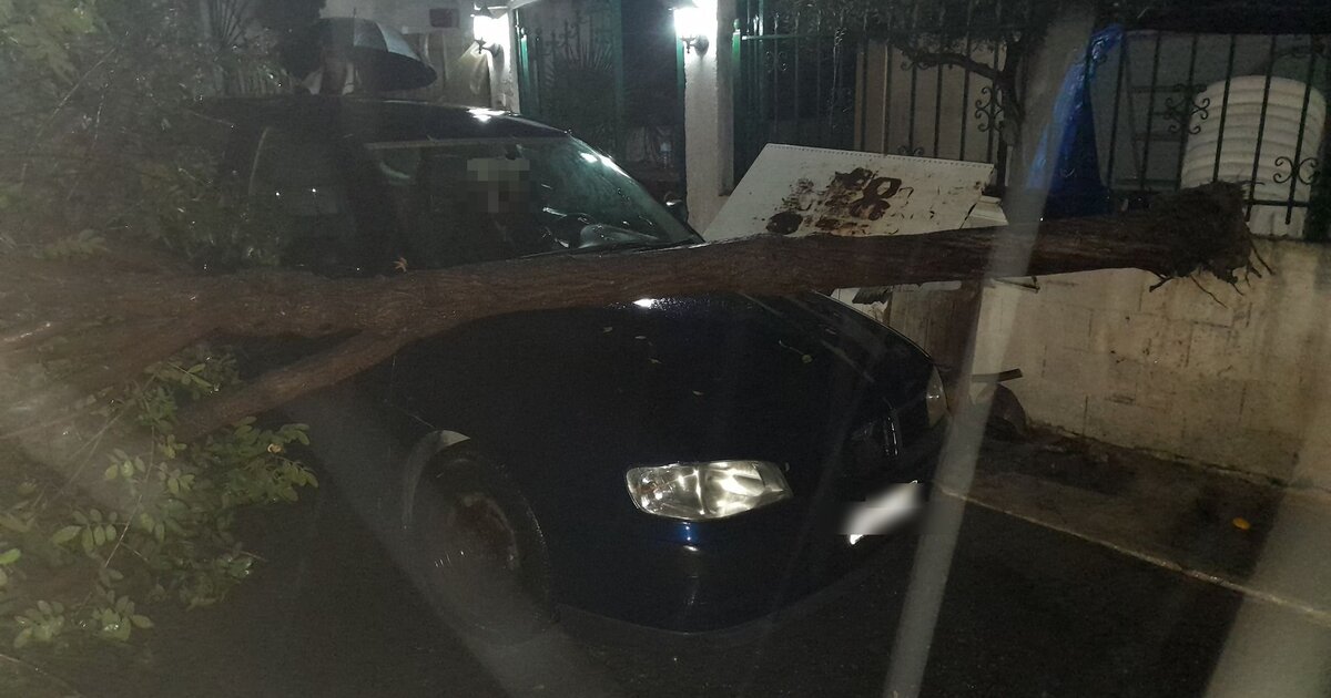 Οι φωτογραφίες δημοσιεύονται στην ομάδα ΜΕΤΕΩΚΡΗΤΕΣ και, όπως αναφέρει ο ιδιοκτήτης του αυτοκινήτου, όπου... προσγειώθηκε το δέντρο, δε χτύπησε κανείς και για το περιστατικό ειδοποιήθηκαν από γείτονες.