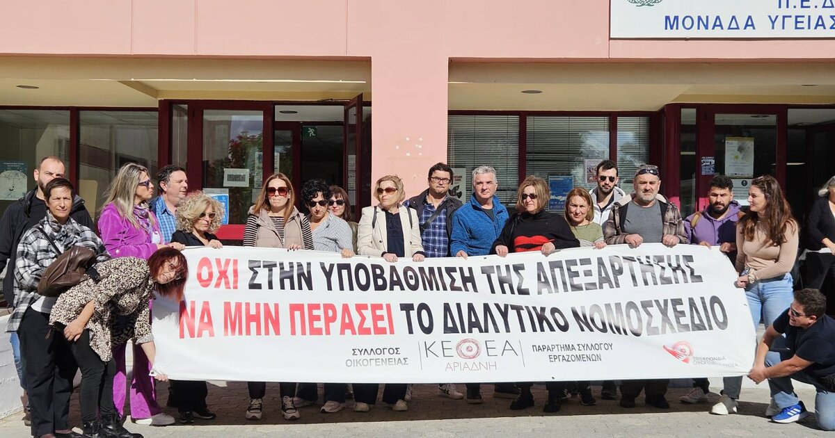 Σύσσωμοι οι εργαζόμενοι του ΚΕΘΕΑ Αριάδνη στο Ηράκλειο πραγματοποίησαν την Τετάρτη 4ωρη στάση εργασίας ενάντια στο νέο νομοσχέδιο του Υπουργείου Υγείας, σύμφωνα με το οποίο το ΚΕΘΕΑ και άλλα στεγνά προγράμματα απεξάρτησης καταργούνται και ιδρύεται νέος οργανισμός με το όνομα Ε.Ο.Π.Α.Ε.