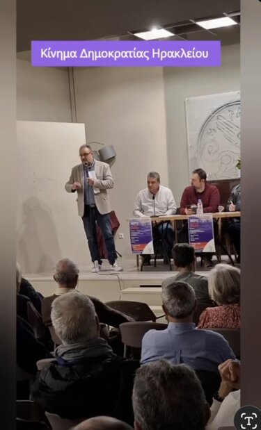 Πραγματοποιήθηκε χτες (Τετάρτη 12/03/2025), με μεγάλη επιτυχία η εκδήλωση που διοργάνωσε η ομάδα Πρωτοβουλίας Ηρακλείου του Κινήματος Δημοκρατίας με θέμα: Νερό SOS.
