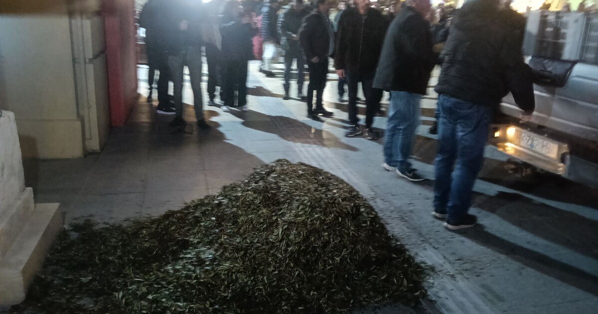 Σε μια συμβολική κίνηση, άδειασαν στην είσοδο της Περιφέρειας φύλλα ελιάς, δηλώνοντας με τον τρόπο αυτό την αγωνία τους για την πορεία της ελαιοκαλλιέργειας. Στη σχετική ανακοίνωση της η ΕΟΑΣΗ προχώρησε στον απολογισμό της κινητοποίησης αναφέροντας τα εξής: