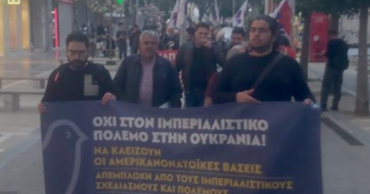 Οι συγκεντρωμένοι απαίτησαν να ακυρωθεί η Συμφωνία για τις Βάσεις και να σταματήσει η συμμετοχή της Ελλάδας στους ιμπεριαλιστικούς σχεδιασμούς και πολέμους.