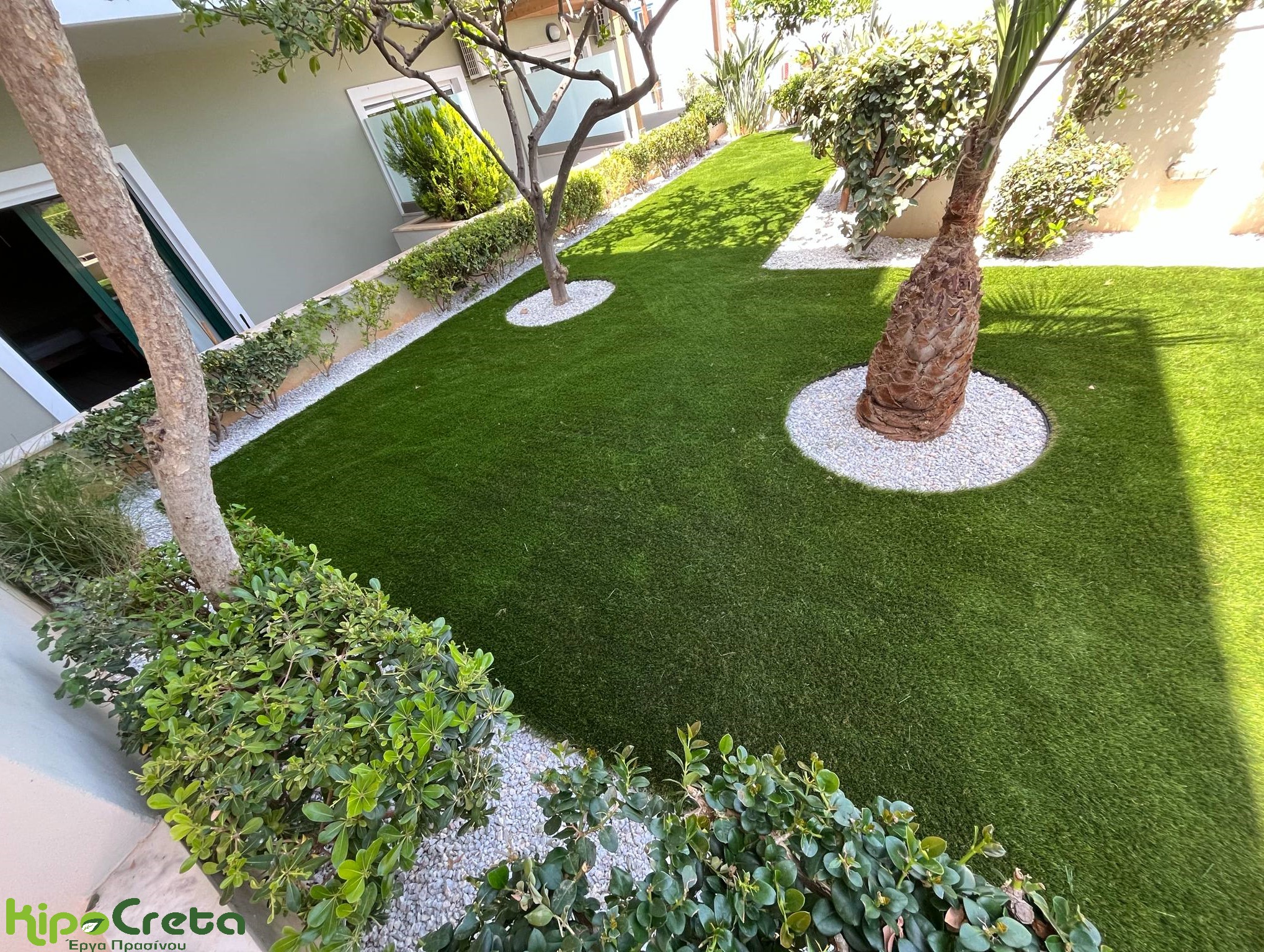 - Τοποθέτηση συνθετικού χλοοτάπητα
