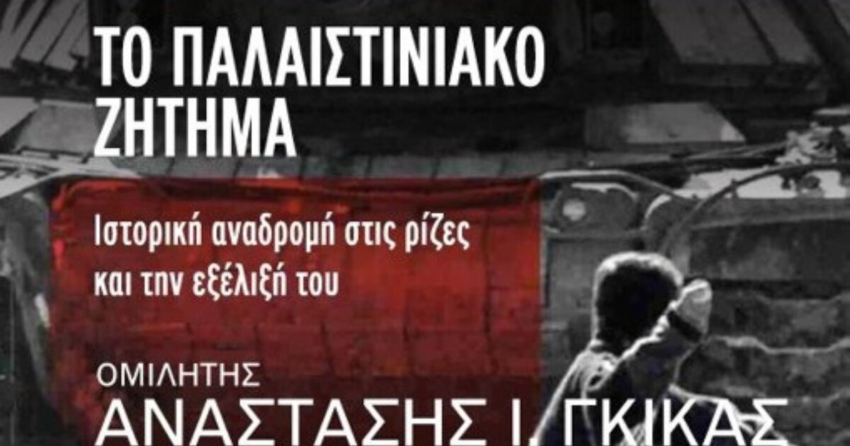 Η Κομματική Οργάνωση Λασιθίου του ΚΚΕ διοργανώνει την Παρασκευή 11 Ιουλίου 2025 στις 19:00, στο Θεατράκι της Λίμνης του Αγίου Νικολάου, εκδήλωση – παρουσίαση του βιβλίου του Αναστάση Γκίκα «Το παλαιστινιακό ζήτημα. Ιστορική αναδρομή στις ρίζες και την εξέλιξή του» με ομιλητή τον Αναστάση Γκίκα, μέλος του Τμήματος Ιστορίας της ΚΕ του ΚΚΕ.