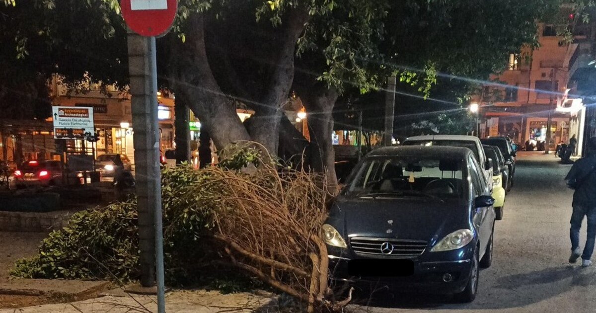 Να σημειωθεί ότι, όπως γράψαμε νωρίτερα, τμήμα από δέντρο έπεσε τα ξημερώματα της Παρασκευής και στην πλατεία της Αγίας Αικατερίνης, πάλι στο κέντρο του Ηρακλείου, ευτυχώς χωρίς να υπάρξουν τραυματισμοί.
