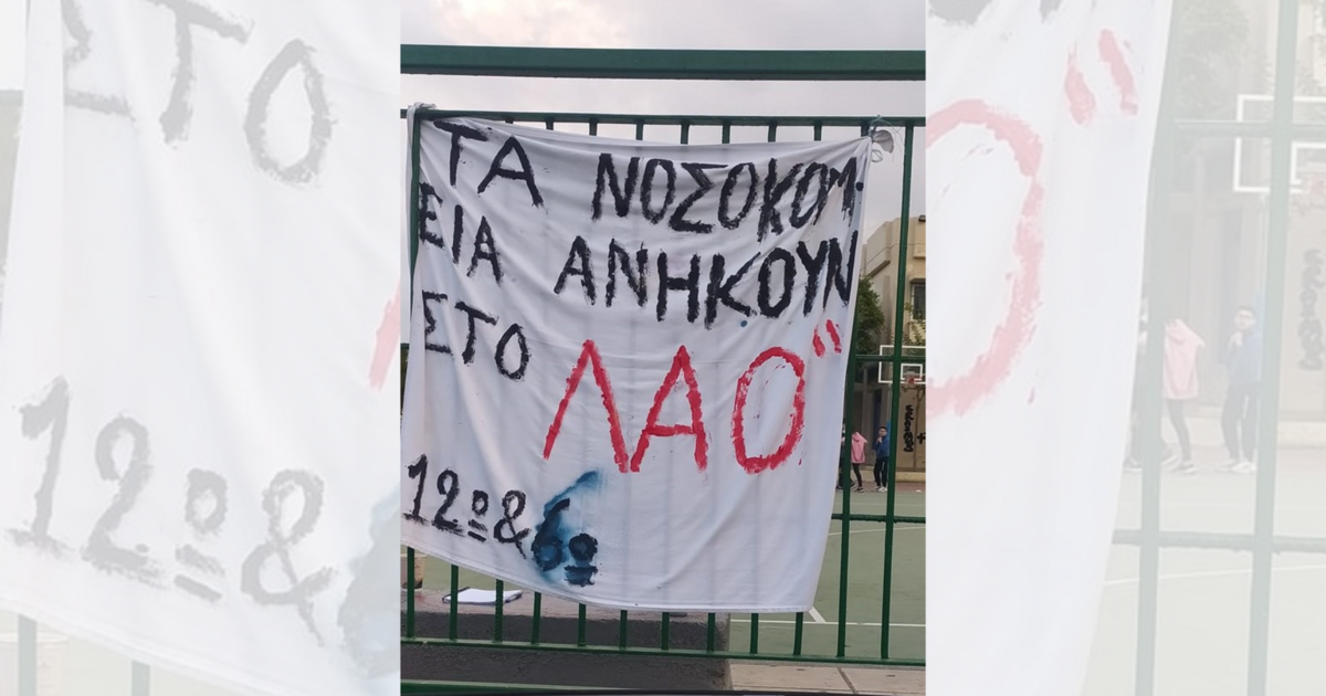 Οι μαθητές διαμαρτύρονται για τις εξελίξεις στο Βενιζέλειο νοσοκομείο Ηρακλείου. Μάλιστα, ανήρτησαν πανό, όπου αναφέρεται πως «Τα νοσοκομεία ανήκουν στον λαό».