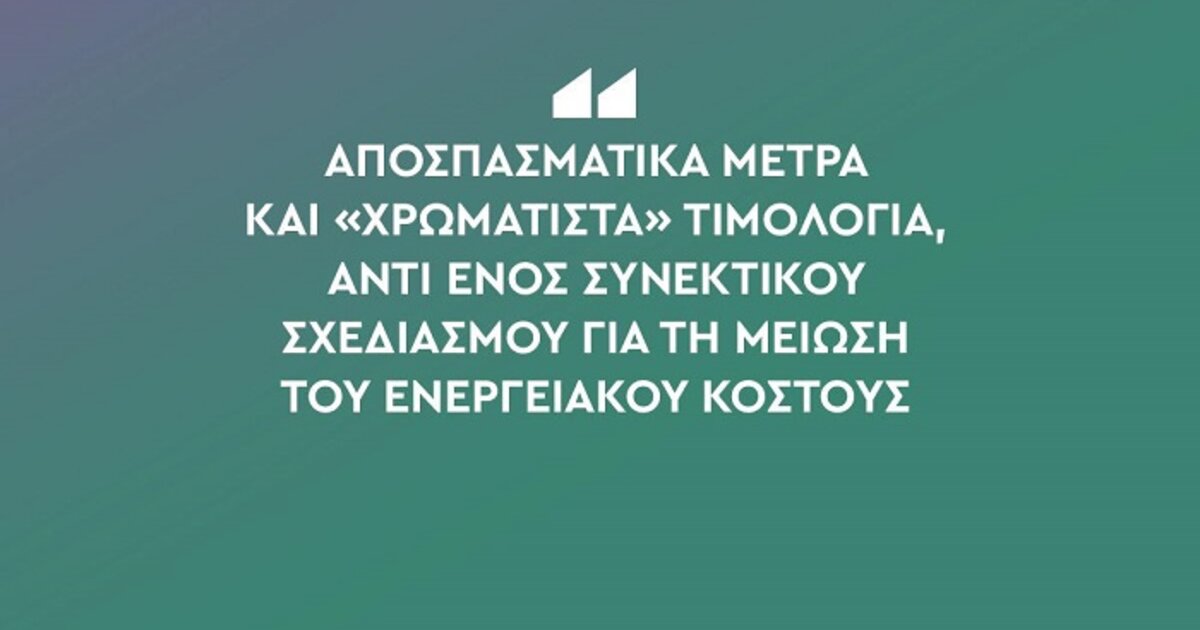 "Αποσπασματικά μέτρα και «χρωματιστά» τιμολόγια, αντί ενός συνεκτικού σχεδιασμού για τη μείωση του ενεργειακού κόστους"
