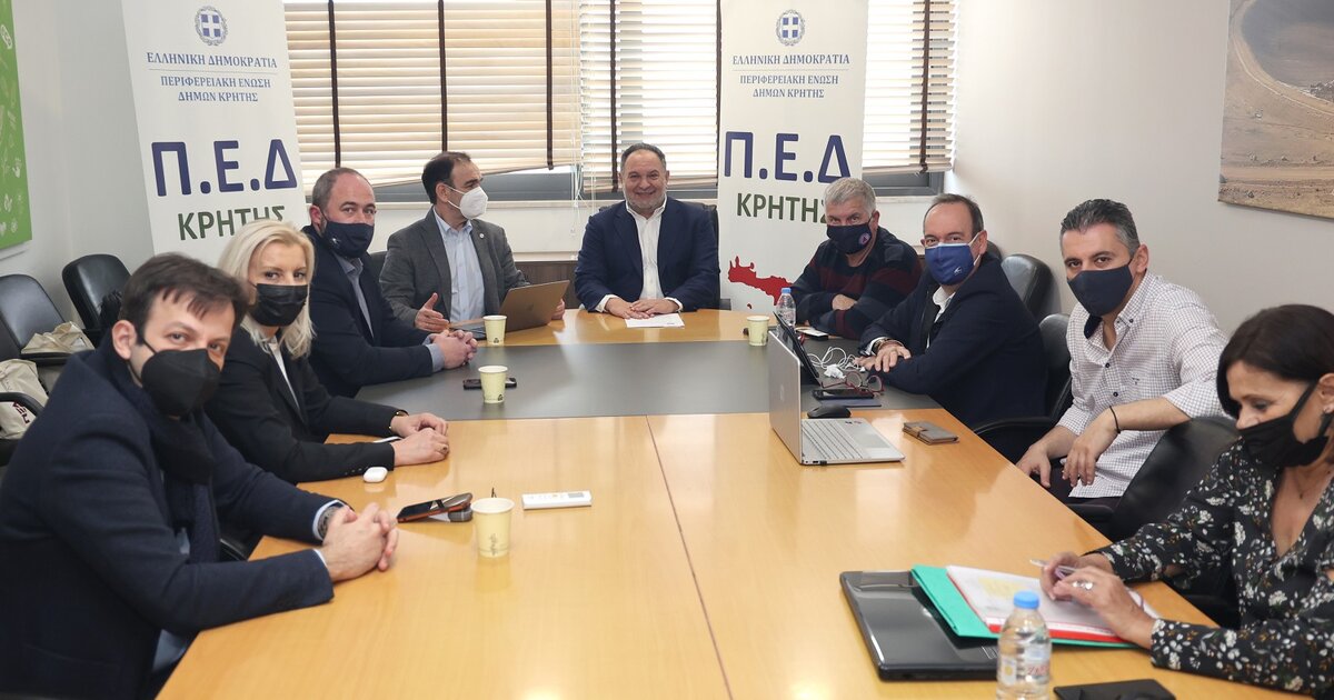 Όπως ανακοινώθηκε, την Τετάρτη 23 Φεβρουαρίου 2022 στις 11:00, θα πραγματοποιηθεί συνάντηση εργασίας του Διοικητικού Συμβουλίου της ΠΕΔ Κρήτης και Δημάρχων με τον Διευθύνοντα Σύμβουλο του Ελληνικού Οργανισμού Ανακύκλωσης ΕΟΑΝ και Πρόεδρο του Εποπτικού Συμβουλίου της ΚΕΔΕ κ. Χιωτάκη προκειμένου να συζητηθούν διάφορα αυτοδιοικητικά θέματα. Ιδιαίτερη έμφαση θα δοθεί σε ζητήματα περιβάλλοντος και ανακύκλωσης.
