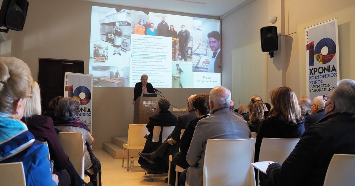Η πρώτη ημέρα των εκδηλώσεων, Παρασκευή 3/2/2023, άνοιξε με τους εγκάρδιους και υποστηρικτικούς χαιρετισμούς που απηύθυναν ο Περιφερειάρχης Κρήτης και Πρόεδρος των Ιδρυμάτων Σταύρος Αρναουτάκης και ο Δήμαρχος Ηρακλείου και Αντιπρόεδρος των Ιδρυμάτων Βασίλης Λαμπρινός. Ο εντεταλμένος Σύμβουλος των Ιδρυμάτων Αλέξης Καλοκαιρινός παρουσίασε με αναλυτικά στοιχεία το πολυδιάστατο έργο του Κοινωνικού Χώρου μέσα σε δέκα χρόνια μεταλλασσόμενης οικονομικής κρίσης και αναφέρθηκε στις προκλήσεις της ασταθούς περιόδου που διανύουμε. Όπως ανέφερε με την παράθεση σχετικών στοιχείων, οι δράσεις του Κοινωνικού Συσσιτίου («Φαγητό με την Αγάπη μας») και του Κοινωνικού Παντοπωλείου έχουν συνολικά συγχρηματοδοτηθεί από προγράμματα ΕΣΠΑ σε ποσοστό 53% και από τα Ιδρύματα σε ποσοστό 47%, σε μια περίοδο στην οποία τα Ιδρύματα κατέβαλαν υψηλούς φόρους στο ελληνικό δημόσιο.
