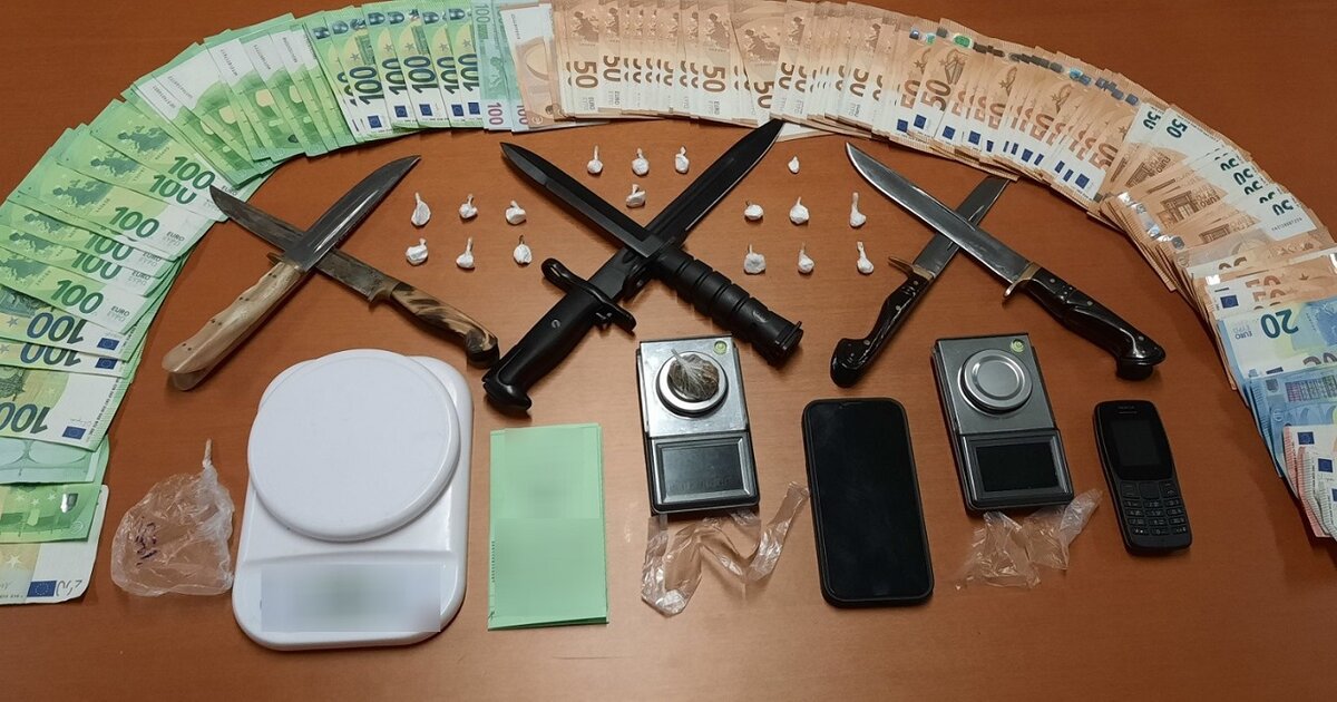 Κατασχέθηκαν 17 φιξάκια κοκαΐνης, 3 ζυγαριές ακριβείας, 2 ξιφολόγχες και 9.790 ευρώ - Δύο συλλήψεις