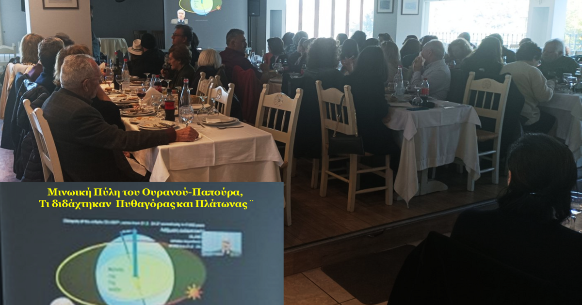 "Στην αρχαιότητα η συνάντηση σε κάποιο χώρο που περιλάμβανε, εκτός από το φαγητό, οινοποσία και συζήτηση για κάποιο φιλοσοφικό θέμα το αποκαλούσαν Συμπόσιο. Έτσι οργάνωσε το Δ.Σ στις Αρχάνες ένα συμπόσιο στα εκατοντάδες μέλη του Συλλόγου με προσκεκλημένο τον αγαπητό μας Αστροφυσικό καθηγητή ΕΚΠΑ Ξενοφώντα Μουσά, ο οποίος μίλησε με θέμα ¨Μινωική Πύλη του Ουρανού-Παπούρα, Τι διδάχτηκαν Πυθαγόρας και Πλάτωνας ¨.