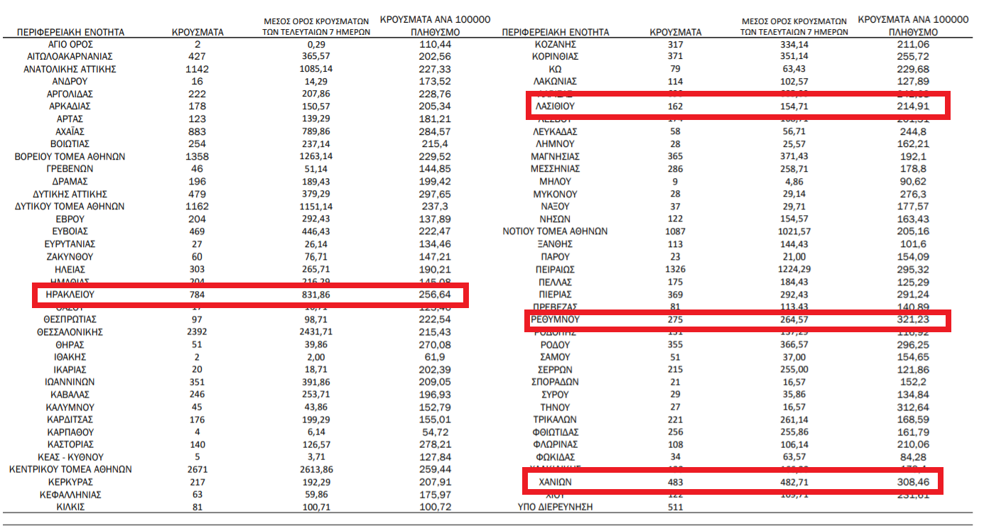 Αναλυτικά η γεωγραφική κατανομή - Στο 6,58% η θετικότητα των τεστ στο Ρέθυμνο