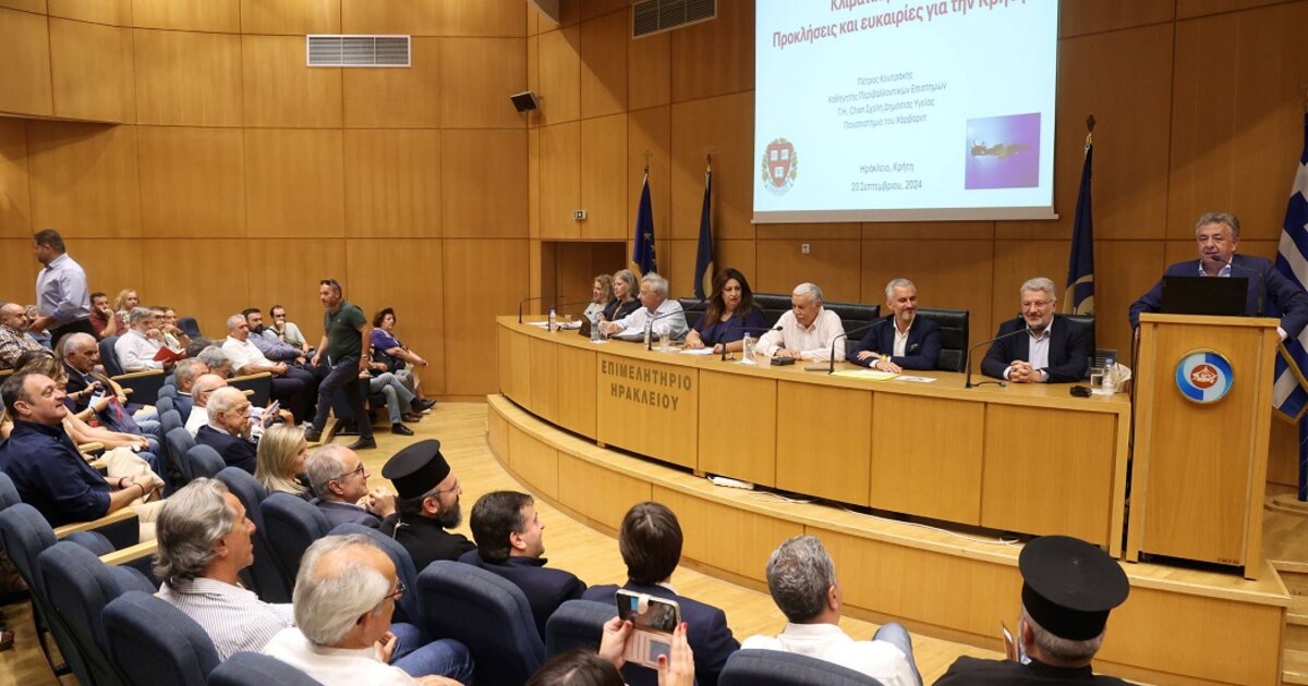 Ήταν κεντρικός ομιλητής στην εκδήλωση που οργάνωσε η Περιφέρεια Κρήτης με θέμα: «Κλιματική αλλαγή, προκλήσεις και ευκαιρίες για την Κρήτη».