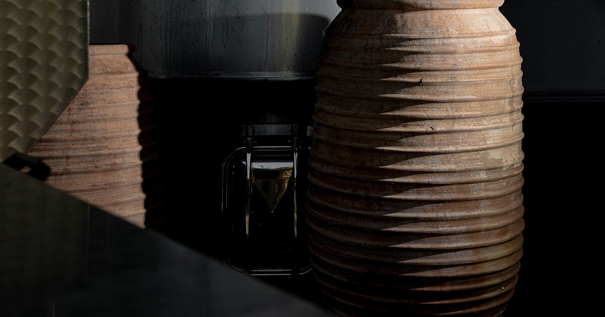 Ένας πήλινος αμφορέας ξεχωρίζει αμέσως ανάμεσα στις σύγχρονες μεταλλικές δεξαμενές ενός οινοποιείου, τραβώντας το βλέμμα με την αυθεντικότητα και την απλότητά του. Με ύψος περίπου ενάμιση μέτρο, είναι γεμάτος με ρώγες κόκκινων σταφυλιών που ζυμώνονται αργά μέσα στον ίδιο τους τον μούστο. Αν πλησιάσει κανείς, μπορεί να ακούσει τον ζωντανό παλμό της ζύμωσης, μια διαδικασία που δίνει την αίσθηση πως το σταφύλι «αναπνέει».