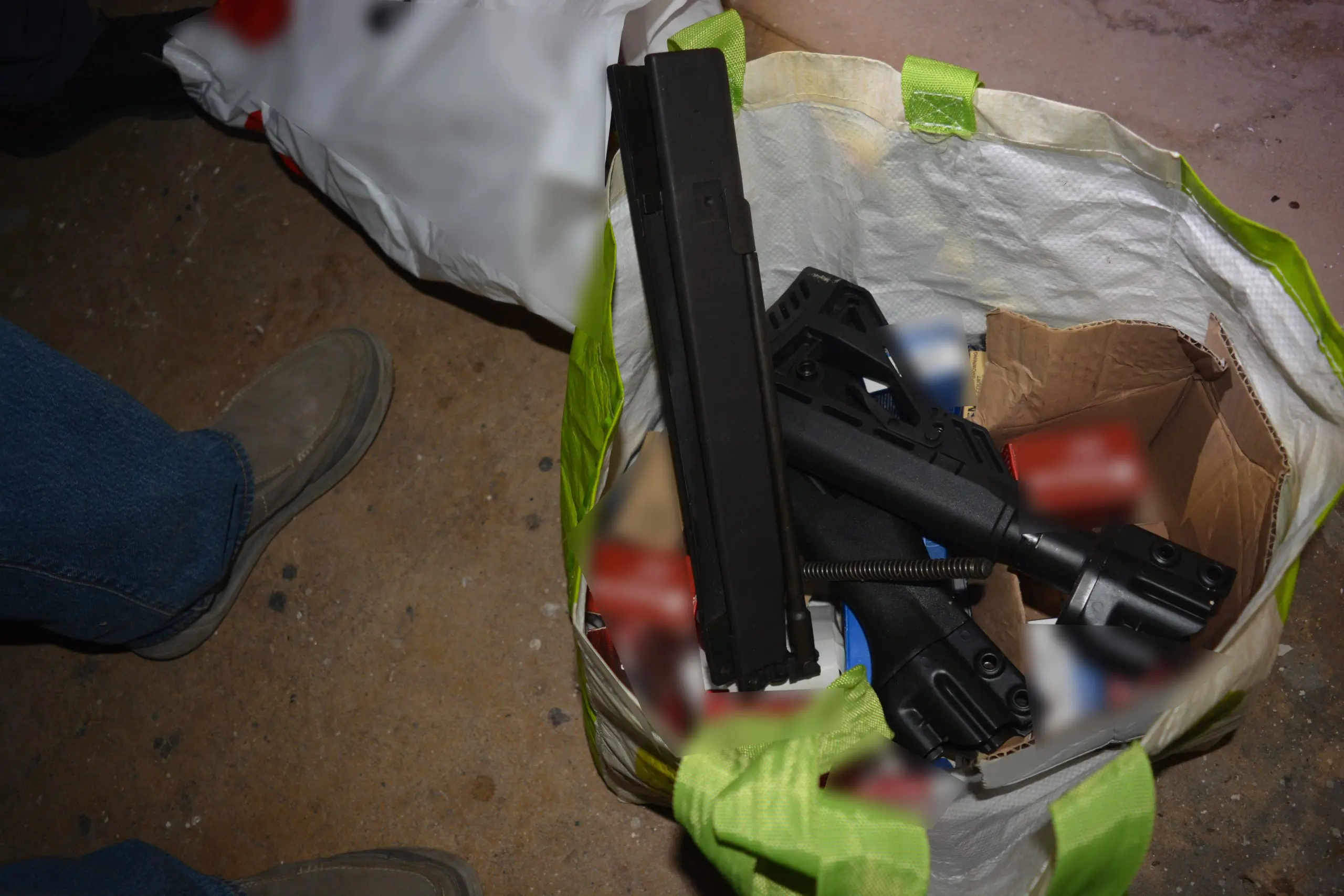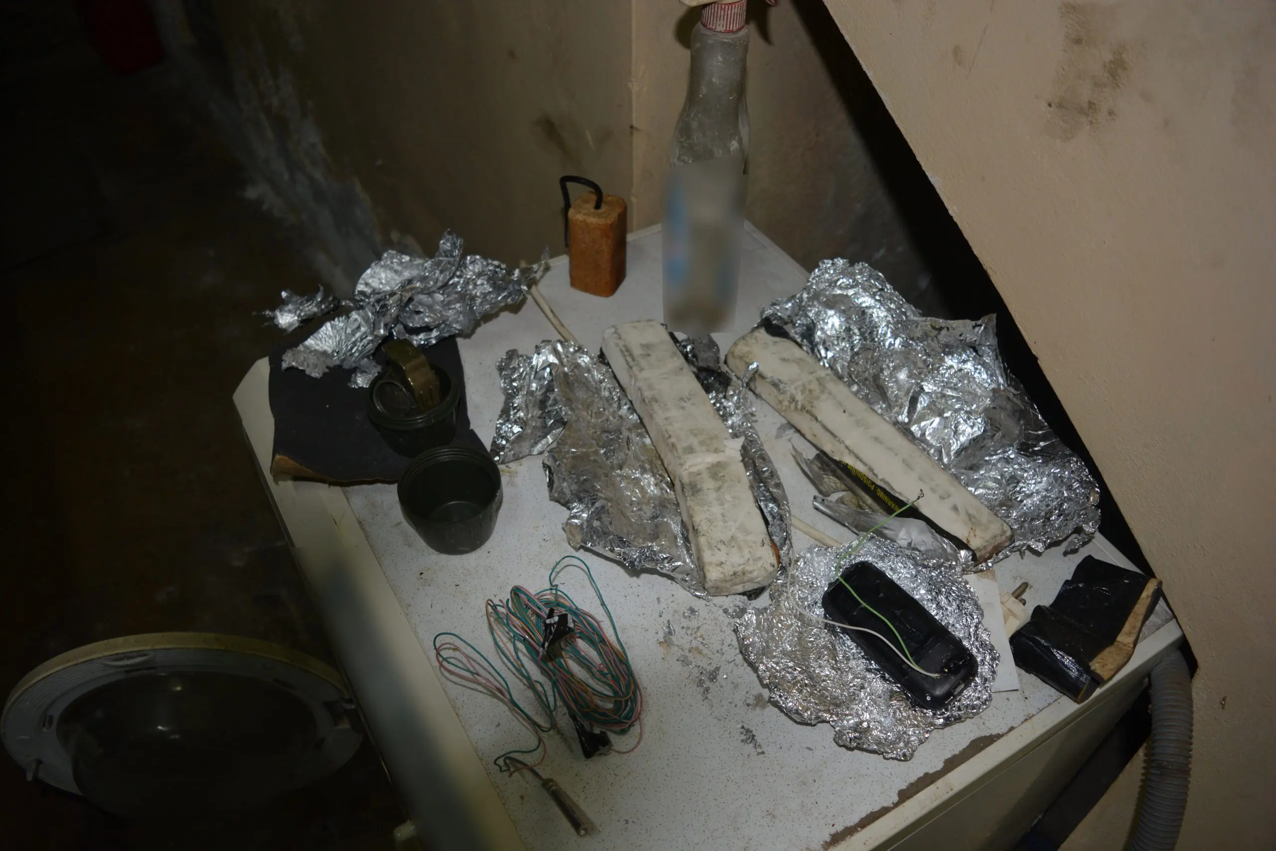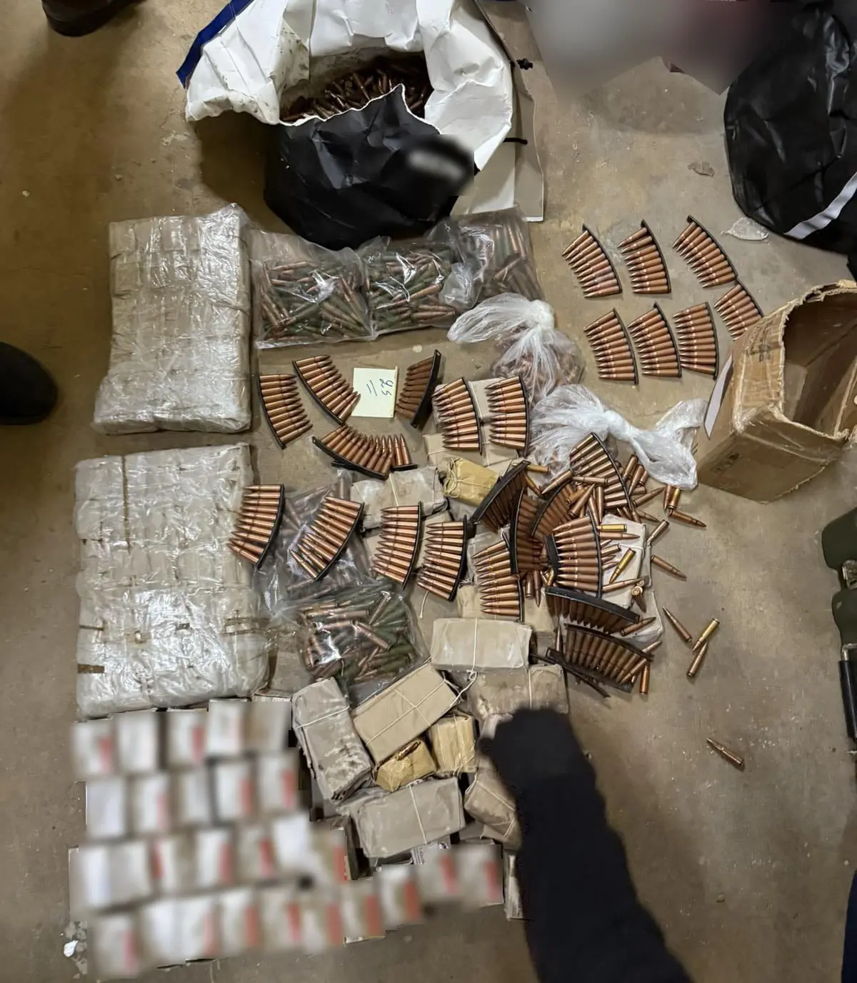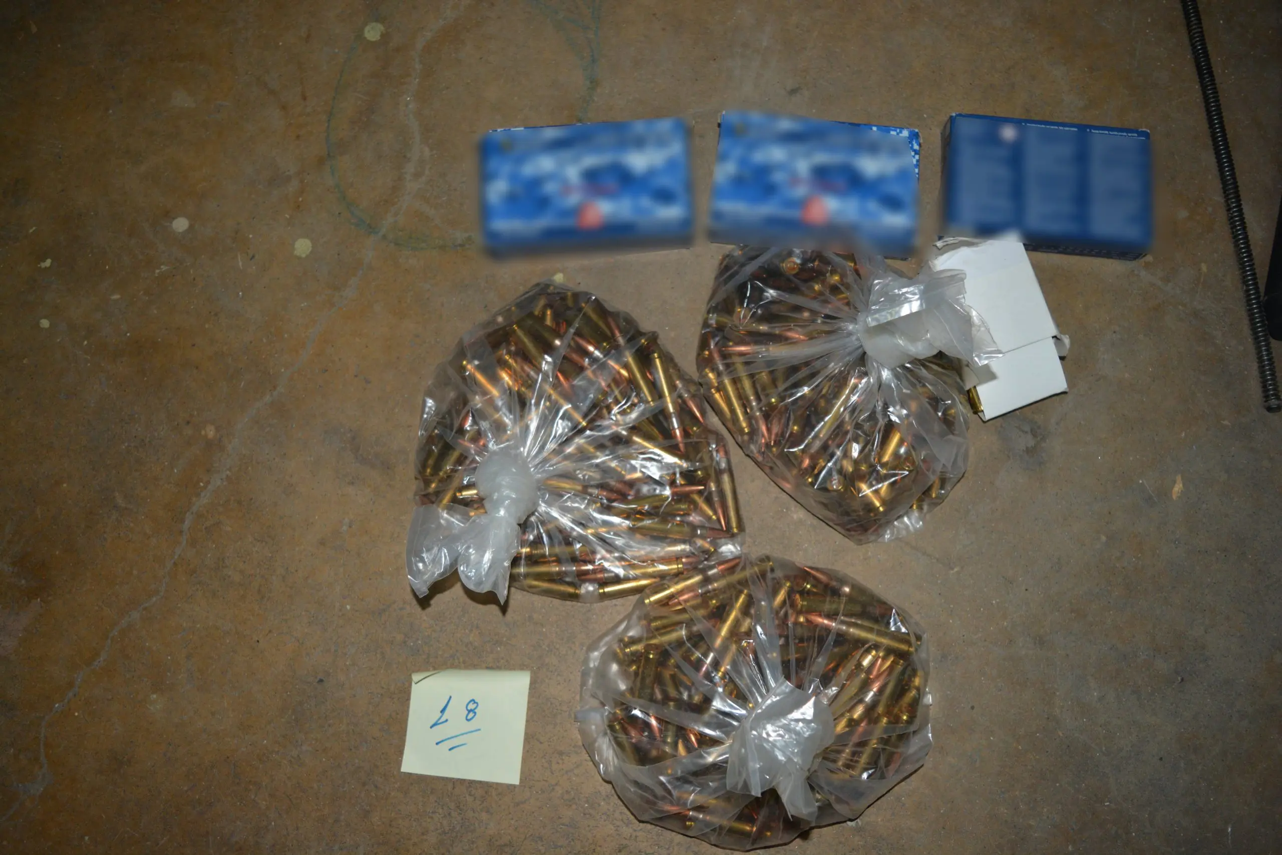 Στο πλαίσιο των συνεχιζόμενων ερευνών, εντοπίστηκε αποθηκευτικός χώρος όπου βρέθηκαν και κατασχέθηκαν, μεταξύ άλλων, αυτοσχέδιος εκρηκτικός μηχανισμός, εκρηκτική ύλη ΤΝΤ, χειροβομβίδες καθώς και χιλιάδες σφαίρες.