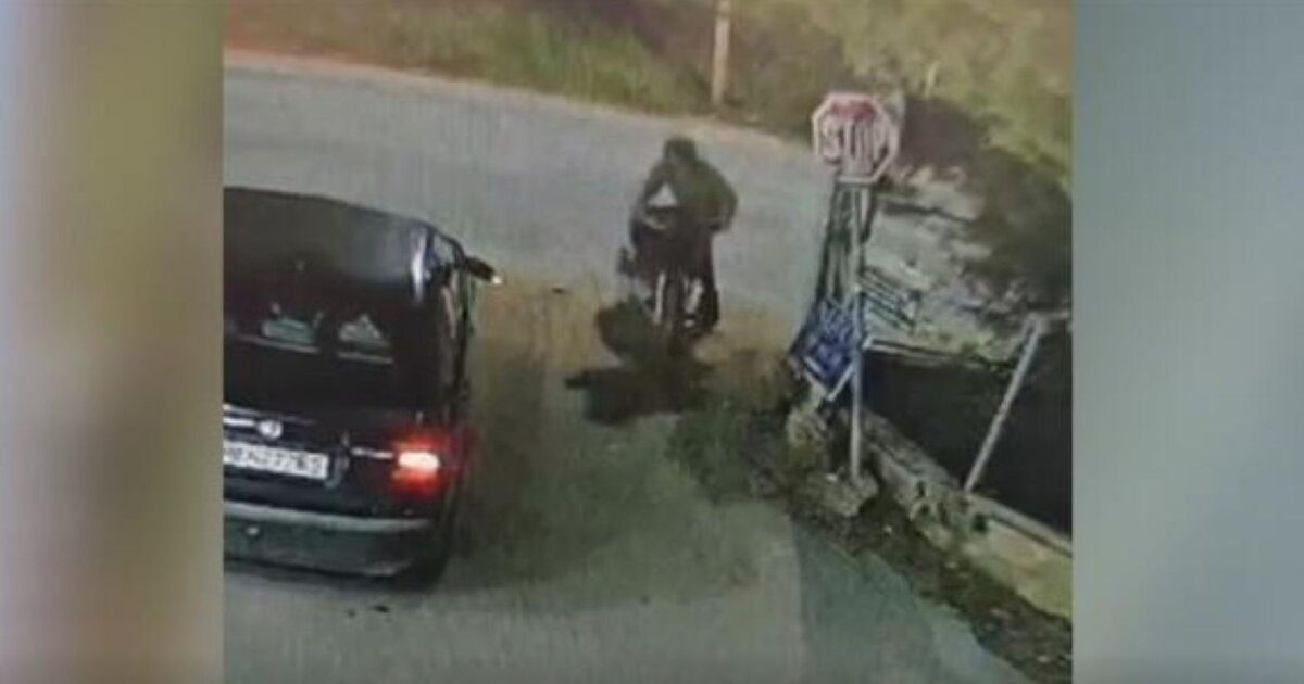 Ένας νεαρός σηκώνει με προσοχή την μοτοσυκλέτα του. Είχε γλιστρήσει νωρίτερα και έπεσε στον δρόμο. Περαστικοί σπεύδουν να τον βοηθήσουν. Σύμφωνα με μαρτυρίες, ο άνδρας αυτός λίγα λεπτά νωρίτερα είχε παρασύρει και εγκαταλείψει με την μηχανή του στον δρόμο μια 25χρονη κοπέλα με τον σκύλο της.
