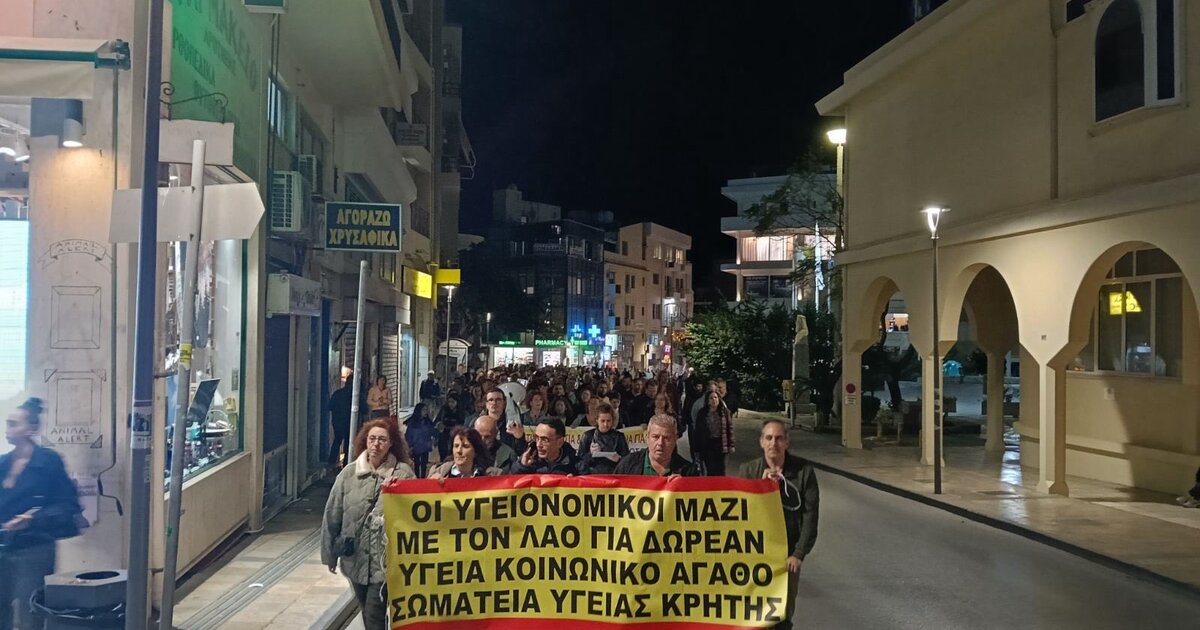 Χιλιάδες πολίτες, σύσσωμα τα υγειονομικά σωματεία της Κρήτης και εκατοντάδες εργατικά σωματεία και μαζικοί φορείς από όλο το νησί έδωσαν το παρόν στις συγκεντρώσεις που έγιναν σε Ηράκλειο, Χανιά, Ρέθυμνο, Άγιο Νικόλαο, Ιεράπετρα και Σητεία συνεχίζοντας συλλογικά τον αγώνα για ένα αποκλειστικά δημόσιο, δωρεάν, σύγχρονο, αναβαθμισμένο σύστημα Υγείας, που να ικανοποιεί καθολικά τις ανάγκες με αξιοποίηση των εξελίξεων της επιστήμης.