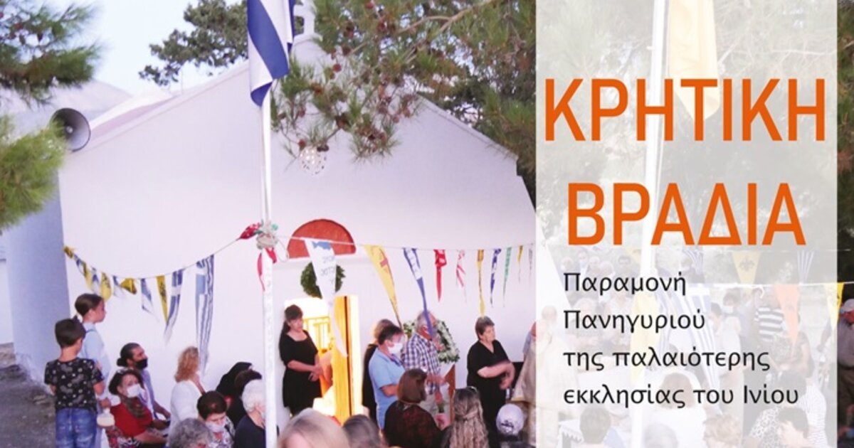 Με αφορμή το πανηγύρι του χωριού, «το Γενέσιο της Θεοτόκου», θα πραγματοποιηθεί η προγραμματισμένη «ΚΡΗΤΙΚΗ ΒΡΑΔΙΑ», στο μαγευτικό τοπίο της Κεράς, στις παρυφές του αρχαιολογικού χώρου της Ρωμαϊκής Αρκαδίας και του ανακαινισμένου Νερόμυλου, στο παλιό φράγμα Ινίου, το Σάββατο 07 Σεπτεμβρίου 2024, με ώρα έναρξης 20:30,