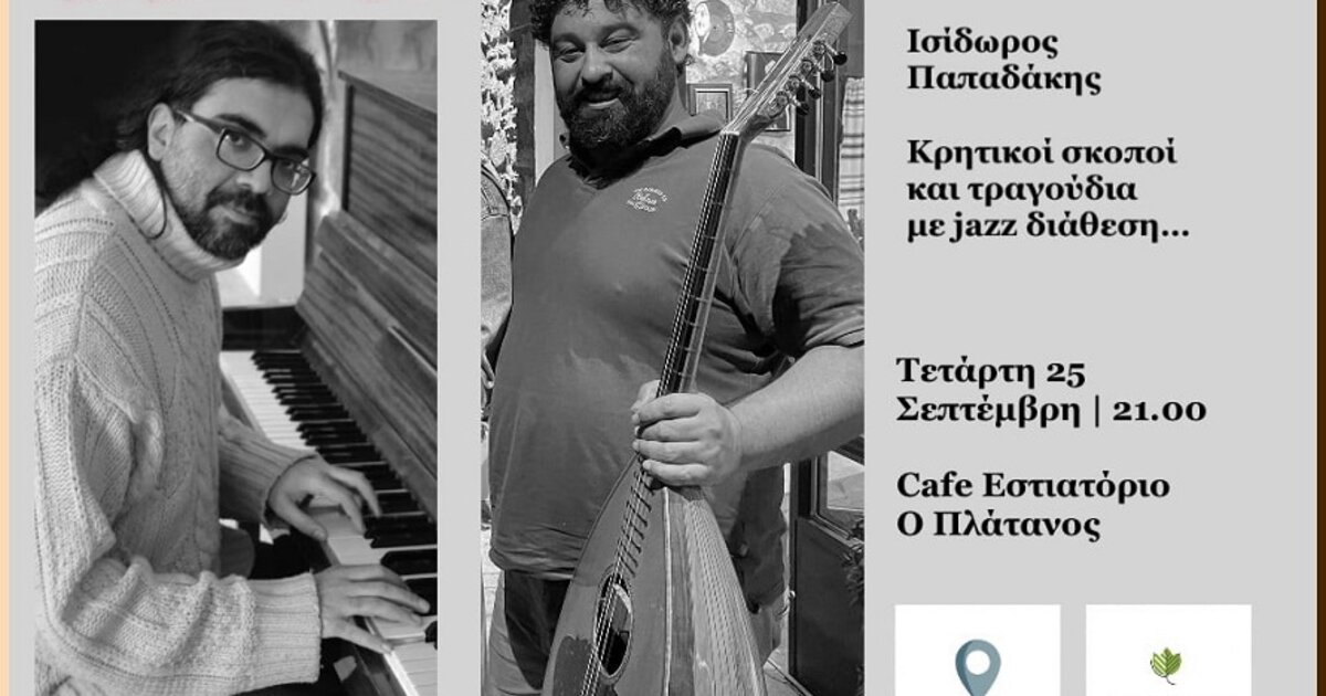 Την Τετάρτη 25 Σεπτεμβρίου στις 21:00 ο Αλέκος Φανουράκης και ο Ισίδωρος Παπαδάκης σε μία υπέροχη βραδιά με Κρητικούς σκοπούς και τραγούδια με jazz διάθεση, με τη διοργάνωση της ΔΕΠΑΝΑΛ Α.Ε.