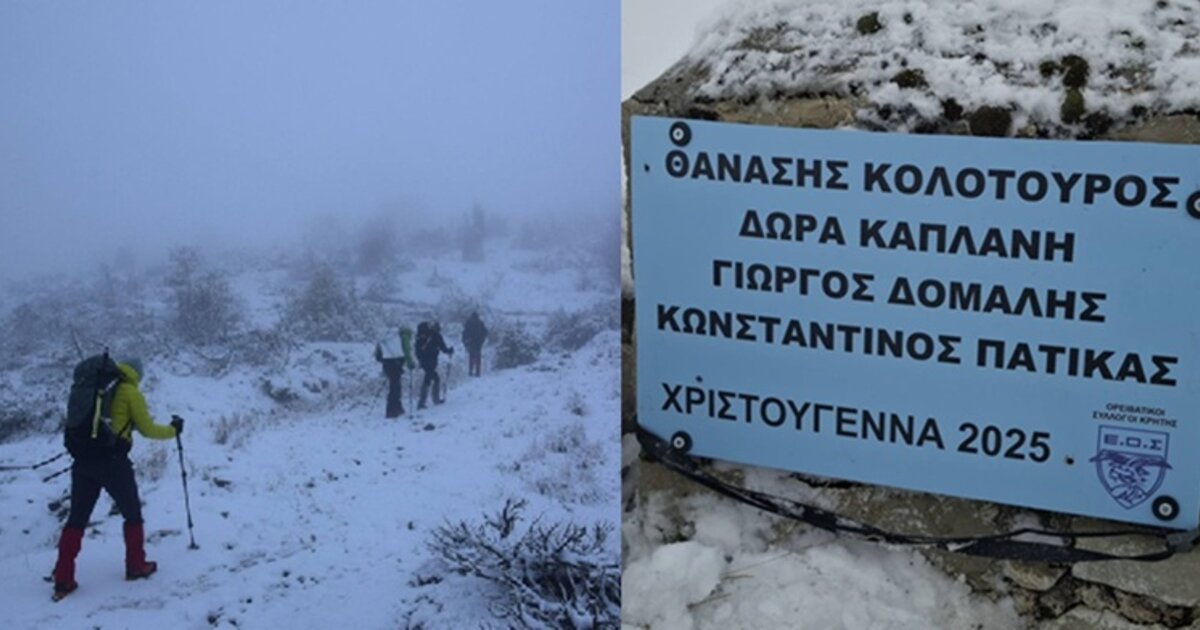 Σε ένα τοπίο άγριο, επιβλητικό και βαθιά συνδεδεμένο με την αγάπη τους για το βουνό, μια μικρή ομάδα Κρητικών ορειβατών ανέβηκε μέσα σε δύσκολες χειμερινές συνθήκες για να τους τιμήσει, τοποθετώντας μια αναμνηστική πλακέτα που θα κρατήσει ζωντανή τη μνήμη τους.