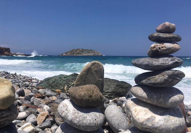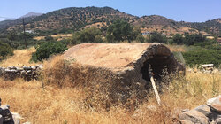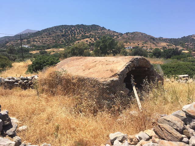Πρώτο μας μέλημα το ανέβασμα μέσα από τους ελαιώνες και τα ξεραμένα χόρτα στο γραφικό εκκλησάκι του Αγίου Πνεύματος, που προσφέρει απρόσκοπτη θέα στην περιοχή. Απαραίτητη η στάση και στην εγκαταλελειμμένη αγροικία κάτω απ’ το εκκλησάκι. Η σκέψη πόση ευτυχία θα ήταν μετά από μια κοπιαστική μέρα στα χωράφια, να κάθεσαι στο πεζούλι κάτω απ’ τη σκιά της χαρουπιάς και ν’ ατενίζεις το πέλαγος, φουρτουνιασμένο κάποτε, όπως και σήμερα, επανέρχεται κάθε φορά, που περνώ!
