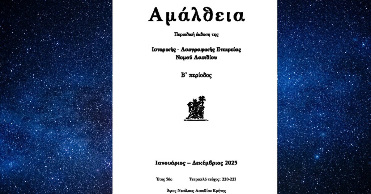 Κυκλοφόρησε το νέο τεύχος του περιοδικού ΑΜΑΛΘΕΙΑ, το οποίο εκδίδει η Ιστορική-Λαογραφική Εταιρεία Νομού Λασιθίου. Το τεύχος είναι τετραπλό και έχει αριθμό 220-223.