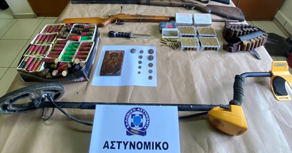 Σε δύο συλλήψεις προχώρησαν οι Αρχές - Κατασχέθηκαν μεταξύ άλλων 5 κυνηγετικά όπλα, εκατοντάδες φυσίγγια και αρχαία νομίσματα
