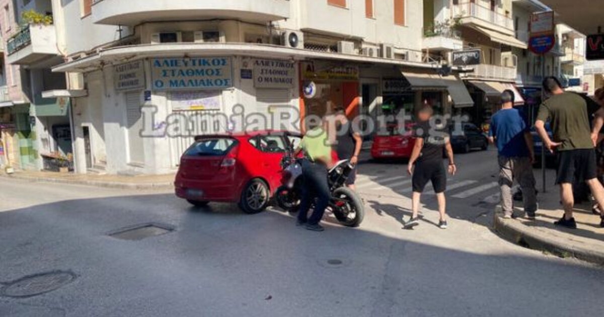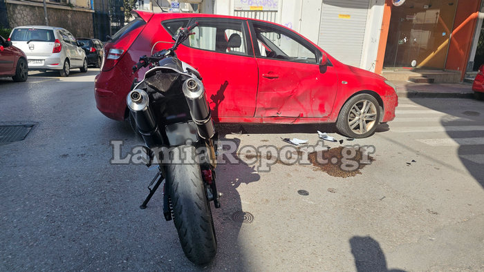 Τροχαίο ατύχημα σημειώθηκε γύρω στις 17:15’ το απόγευμα της Δευτέρας (19/6) στο κέντρο της Λαμίας και συγκεκριμένα στη διασταύρωση των οδών Χαντζοπούλου και Λεωσθένους, όταν μοτοσικλέτα συγκρούστηκε με διερχόμενο ΙΧ.