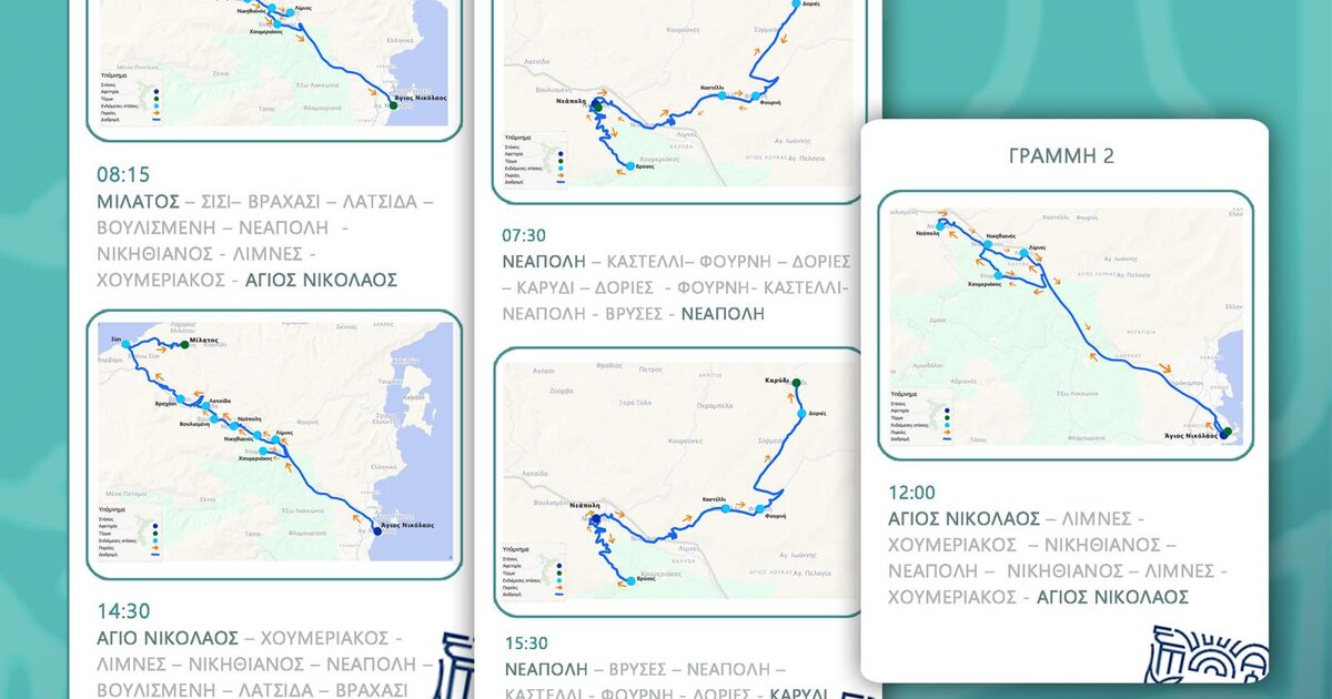 Ξεκινούν την Δευτέρα 28 Ιουλίου δρομολόγια που θα συνδέουν για τους καλοκαιρινούς μήνες τον Άγιο Νικόλαο με τη Νεάπολη και Δημοτικές Κοινότητες του Επάνω Μιραμπέλλου