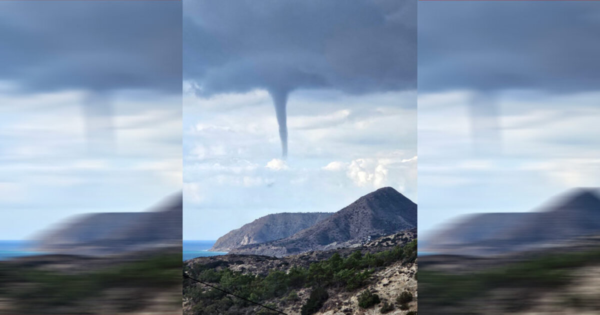 Από τη θάλασσα υψώθηκε ένας καλοσχηματισμένος υδροστρόβιλος, διαγράφοντας για αρκετά λεπτά μια εντυπωσιακή κάθετη στήλη αέρα που ανέβαινε έως τη βάση των νεφών.