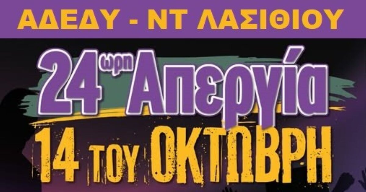 Μέσα από ανακοίνωσή του, το Νομαρχιακό Τμήμα της ΑΔΕΔΥ Λασιθίου, κατόπιν απόφασης της Εκτελεστικής Επιτροπής της Α.Δ.Ε.Δ.Υ., "ενημερώνει για την κήρυξη 24ωρης Πανελλαδικής Απεργίας για την Τρίτη, 14 Οκτωβρίου 2025, ημέρα συζήτησης στην Ολομέλεια της Βουλής του αντεργατικού νομοσχεδίου, που θεσμοθετεί τη 13ωρη εργασία, μετατρέποντας τον εργαζόμενο του 21ου αιώνα σε εργάτη χωρίς δικαιώματα και ζωή.