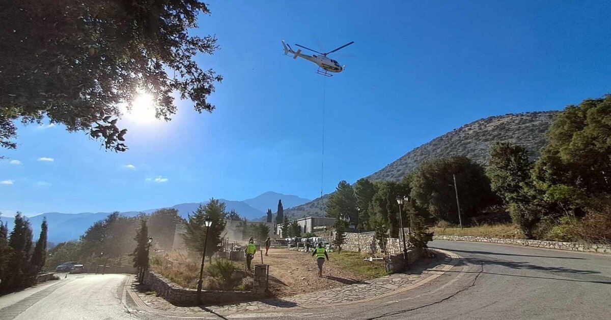 "Λίφτινγκ" στο Δικταίο Άντρο - Δείτε την εναέρια επιχείρηση μεταφοράς των υλικών!