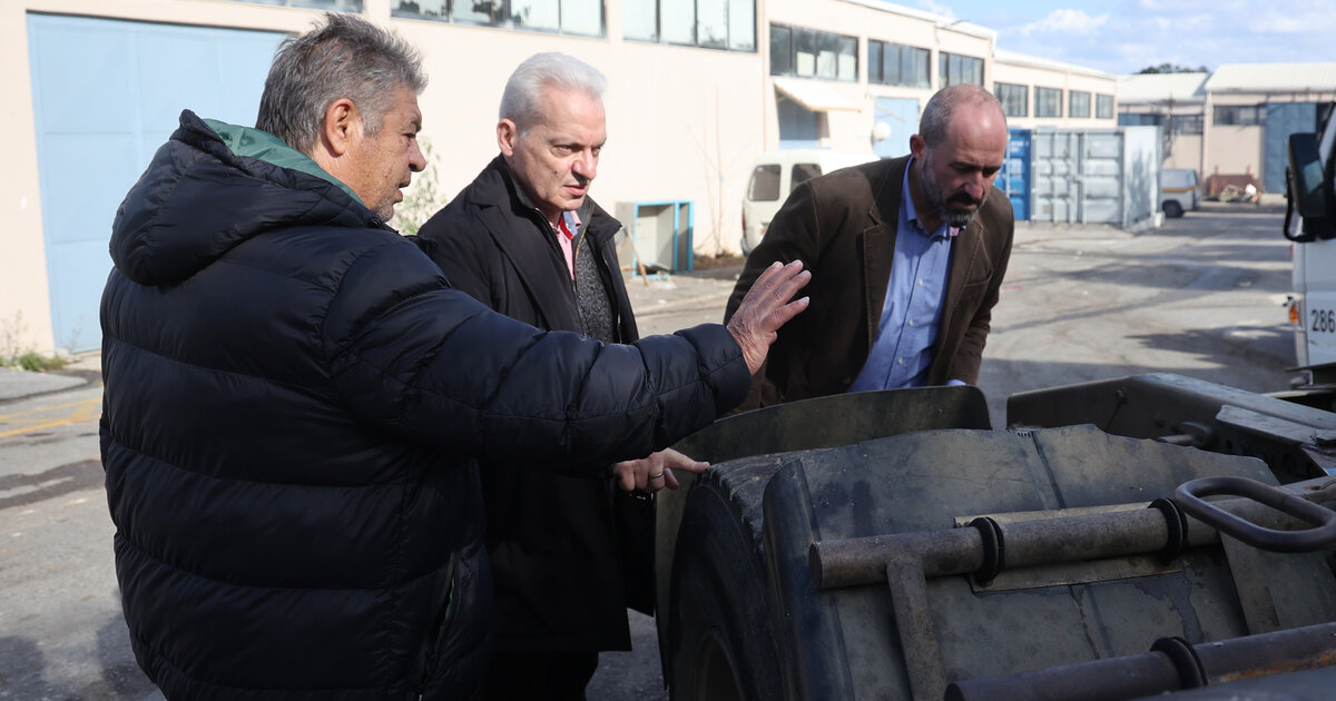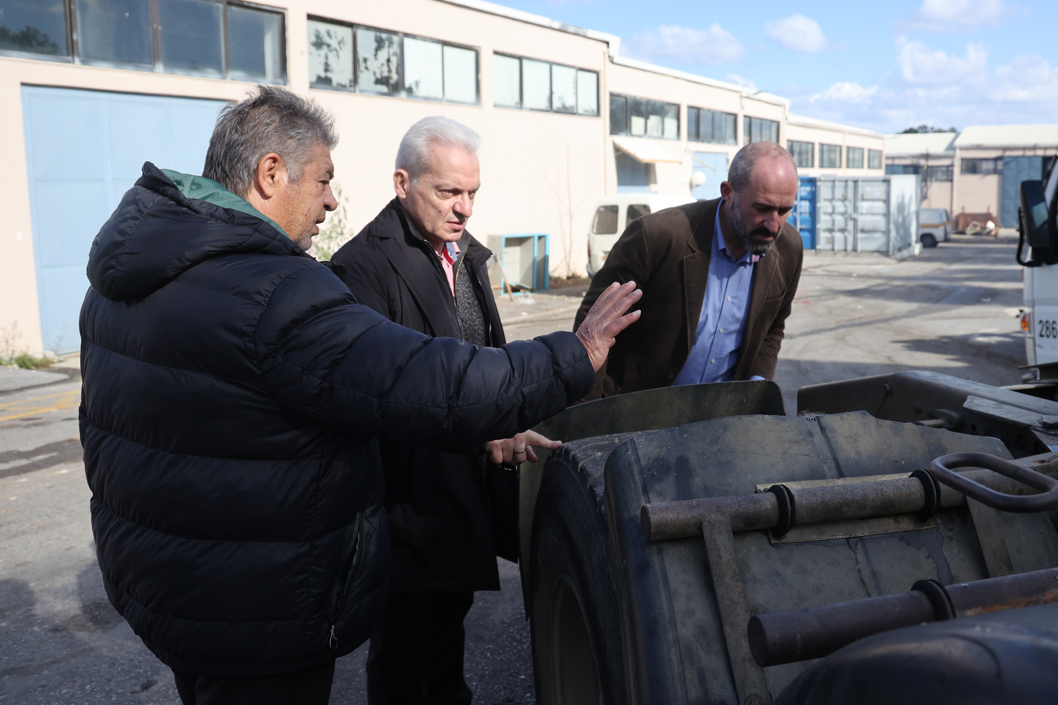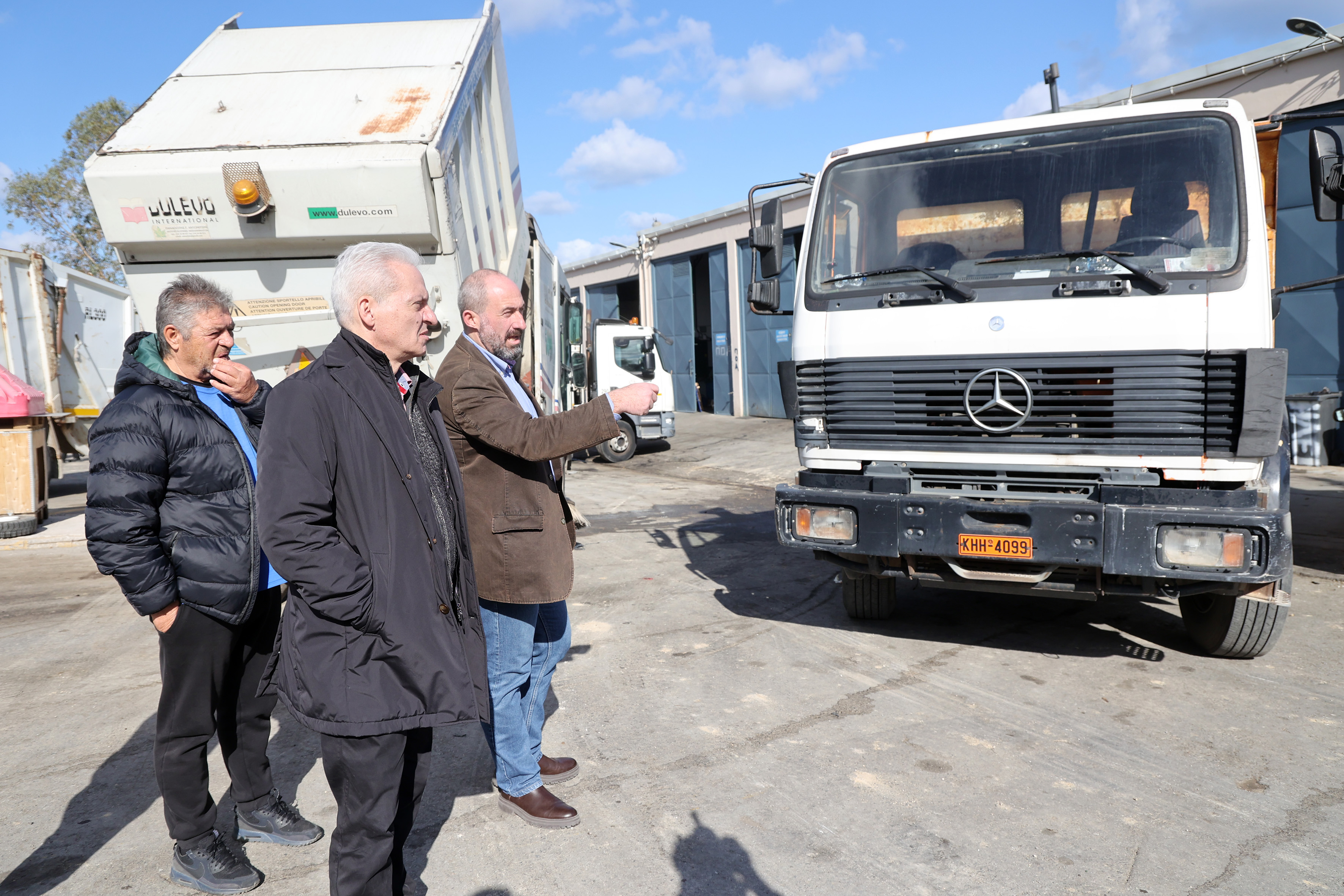 Στο αμαξοστάσιο του Δήμου Ηρακλείου ο Δήμαρχος Ηρακλείου Αλέξης Καλοκαιρινός, συνοδευόμενος από τον Αντιδήμαρχο Καθαριότητας, Νίκο Γιαλιτάκη