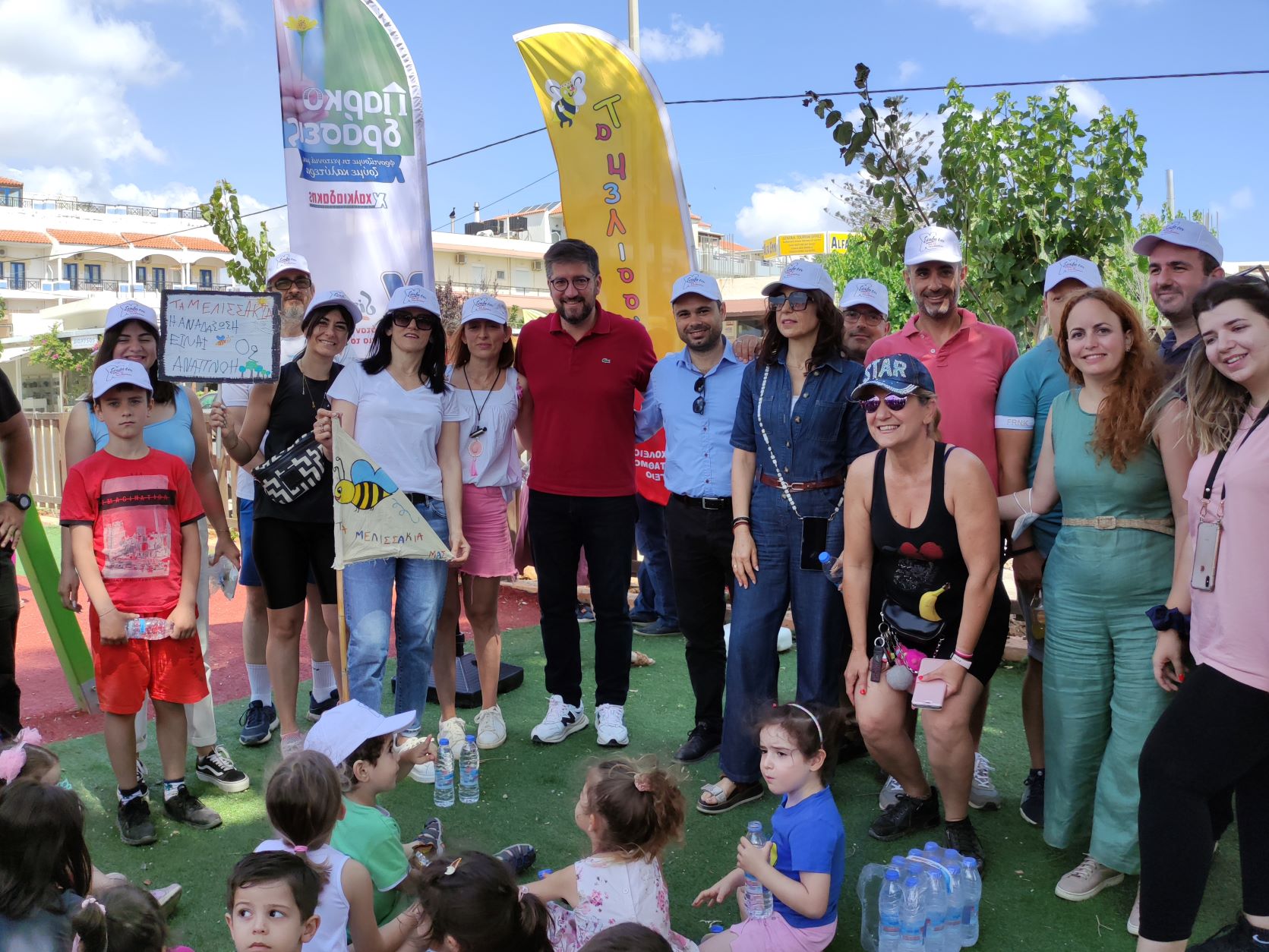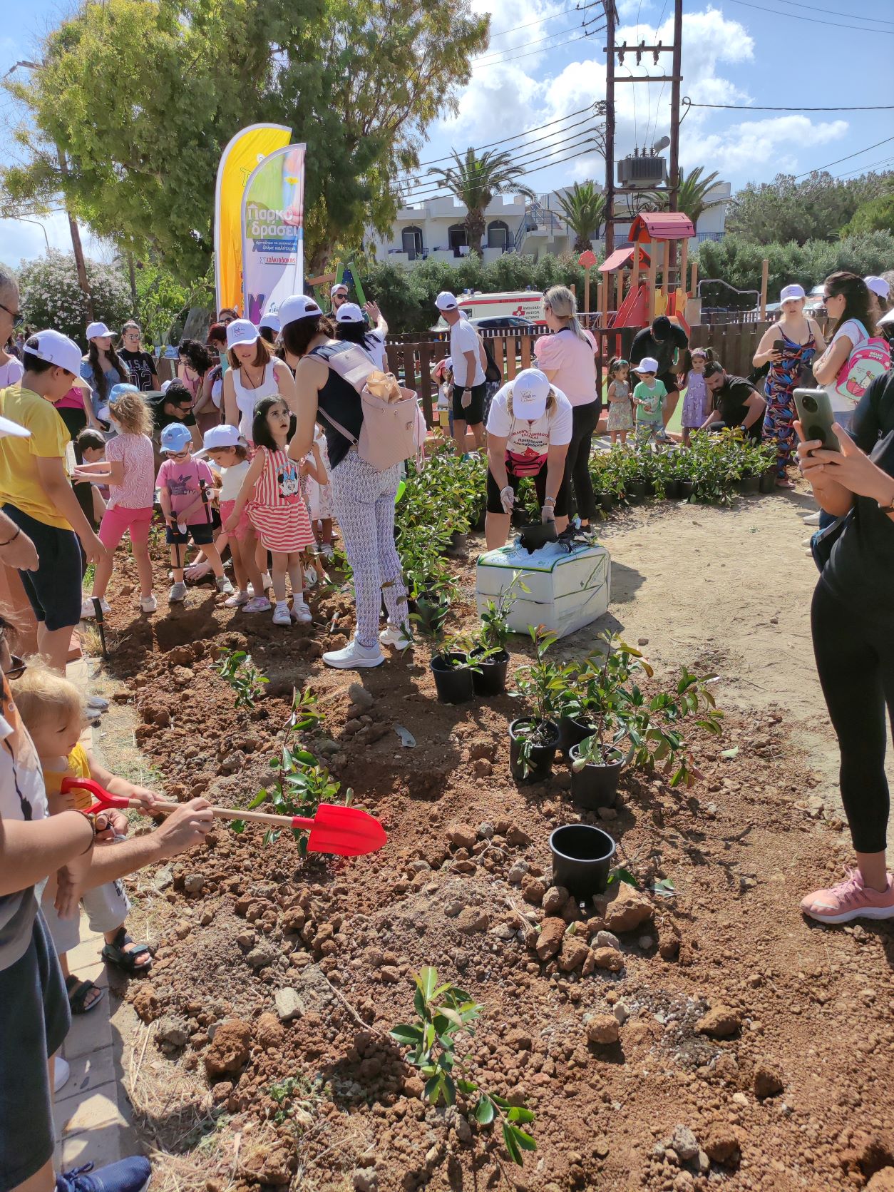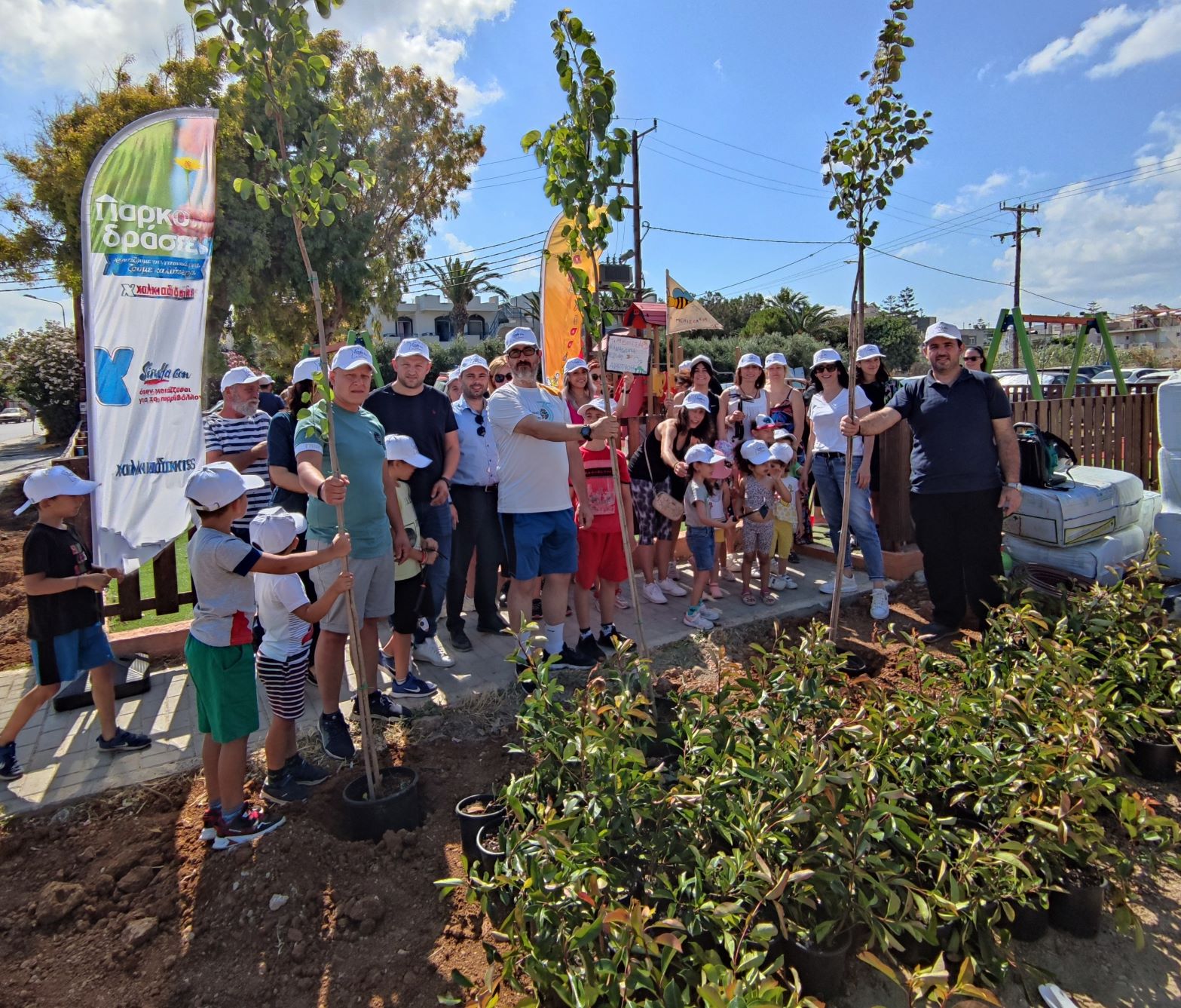 «Ένας χώρος πρασίνου ξαναγεννιέται! Από νωρίς το πρωί στην Αμμουδάρα ενώσαμε δυνάμεις με τα SM Χαλκιαδάκης και τις «Παρκοδράσεις» τους σε μια δεντροφύτευση γεμάτη παιδικά χαμόγελα! Με τον κ. Μηνά Χαλκιαδάκη χαρήκαμε τους μικρούς κηπουρούς από τα ΚΔΑΠ, τα Μελισσάκια και τον Πολιτιστικό Σύλλογο Γαζίου που μας έδειξαν ότι είναι στο χέρι μας να πλάσουμε τον κόσμο όπου θέλουμε να ζήσουμε. Γιατί πάντα τα παιδιά θα δείχνουν το δρόμο» ανέφερε ο Δήμαρχος Μαλεβιζίου Μενέλαος Μποκέας στις σημερινές «Παρκοδράσεις» στην Αμμουδάρα. Μια πρωτοβουλία των Super Market Χαλκιαδάκης που αγκάλιασε θερμά ο Δήμος Μαλεβιζίου, στο πλαίσιο στήριξης της τοπικής κοινωνίας μέσω δράσεων εταιρικής υπευθυνότητας που αναπτύσσονται από επιχειρήσεις.