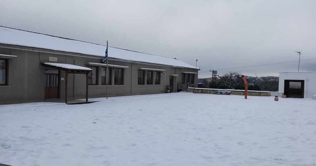 Κεντρική Φωτογραφία: Χιονόστρωση στην αυλή του Δημοτικού Σχολείου Επισκοπής του Δήμου Χερσονήσου, από Γιάννη Φουρναράκη