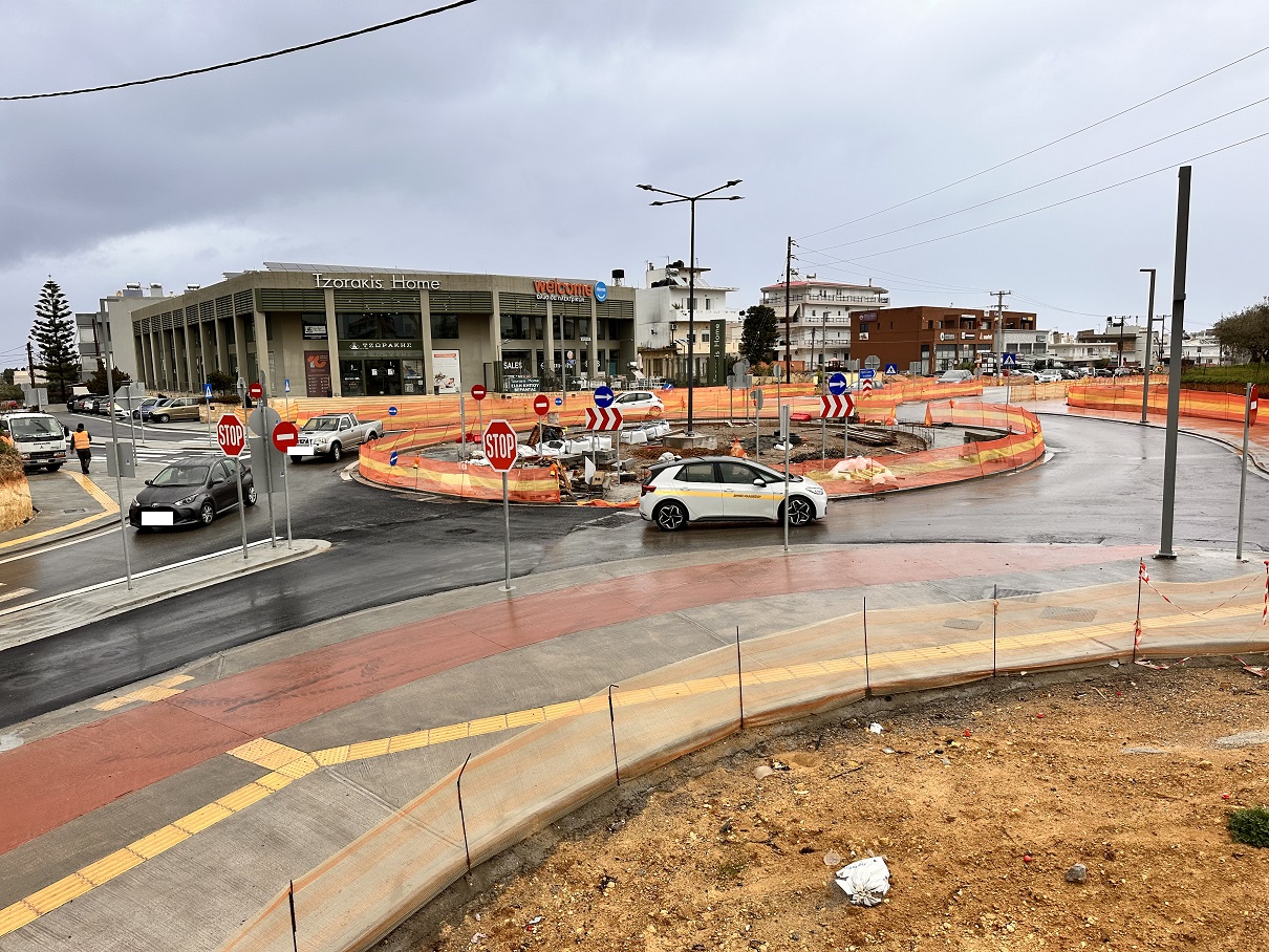 Παράλληλα, η αναβάθμιση του κόμβου βελτιώνει αισθητικά ολόκληρη την περιοχή, με νέα πεζοδρόμια και ποδηλατόδρομο, που δεν υπήρχαν μέχρι σήμερα, διαμορφώνοντας έναν πιο φιλικό χώρο για τους κατοίκους και τους επισκέπτες. Ο επαρκής φωτισμός που έχει εγκατασταθεί, ιδιαίτερα τις νυχτερινές ώρες, προσφέρει αυξημένη ασφάλεια, τόσο για τα διερχόμενα οχήματα όσο και για τους πεζούς.