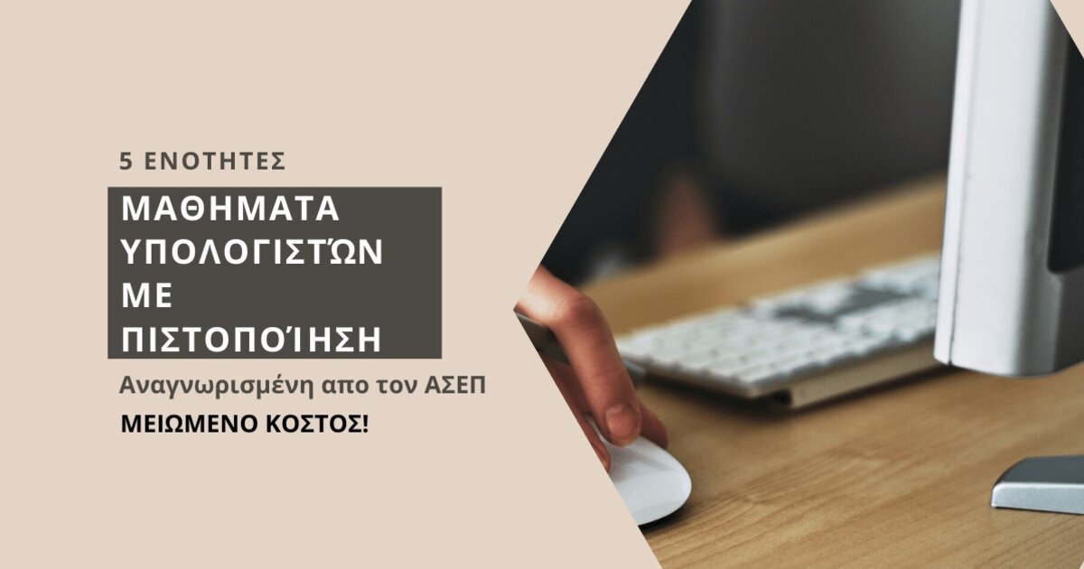 Νέο κύκλο μαθημάτων Υπολογιστών για την απόκτηση πιστοποίησης που αναγνωρίζει ο ΑΣΕΠ και το Ελληνικό Δημόσιο σε 5 ενότητες (word-excel-windows-internet-powerpoint) διοργανώνει το ΚΕΚ ΤΕΧΝΙΚΕΣ ΣΧΟΛΕΣ ΕΠΙΜΕΛΗΤΗΡΙΟΥ ΗΡΑΚΛΕΙΟΥ. Το πρόγραμμα προσφέρει: