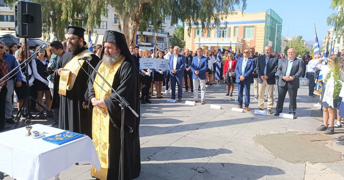 Την επιμνημόσυνη δέηση τέλεσε ο γενικός Αρχιερατικός Επίτροπος της Ιεράς Αρχιεπισκοπής Κρήτης π. Νικηφόρος Κουνάλης, ενώ στο μνημείο του Άγνωστου Στρατιώτη στεφάνι κατέθεσαν οι: Αντιπεριφερειάρχης Ηρακλείου Νίκος Συριγωνάκης, Αντιδήμαρχος Ηρακλείου Αντώνης Περισυνάκης, Περιφερειακός Διευθυντής Εκπαίδευσης Κρήτης Μανόλης Καρτσωνάκης, Διευθυντής Α/θμιας Εκπαίδευσης Μανόλης Μπελαδάκης, Β/θμιας Εκπαίδευσης Γιάννης Καραγιαννίδης, μαθητές Α/θμιας και Β/θμιας Εκπαίδευσης, εκπρόσωποι σωμάτων Ελληνικού Οδηγισμού και Προσκόπων.