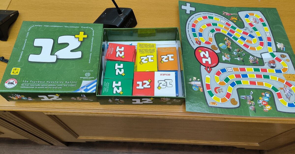 Το 12ο Γυμνάσιο Ηρακλείου με την στήριξη της Περιφέρειας Κρήτης, δημιούργησε και παρουσίασε σήμερα στο πλαίσιο συνέντευξης τύπου, το νέο του εκπαιδευτικό εγχείρημα το επιτραπέζιο παιχνίδι «12+». Πρόκειται για ένα πρωτότυπο παιχνίδι που δημιουργήθηκε από την κοινότητα του σχολείου, με στόχο την ενίσχυση της μάθησης μέσα από τον παιχνίδι. Για το παιχνίδι είχε γράψει το Cretalive, όταν οι μαθητές είχαν μεταμορφώσει την αυλή του σχολείου σε ένα τεράστιο επιτραπέζιο (δείτε εδώ).