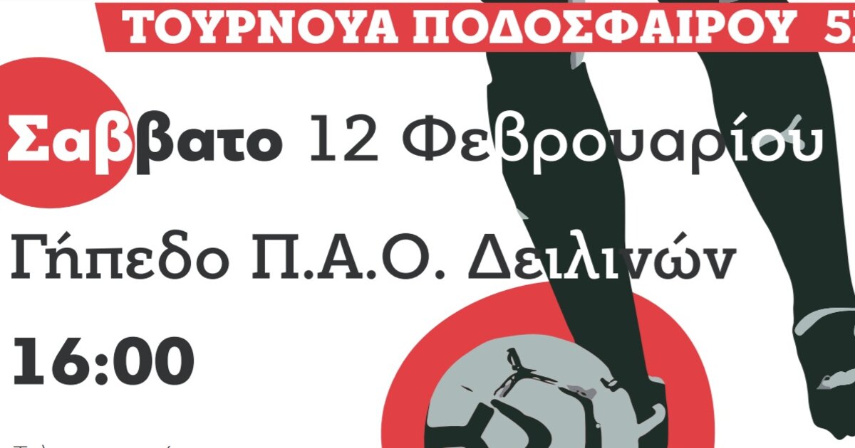- Σάββατο 12 Φλεβάρη μεγάλο τουρνουά ποδοσφαίρου 5*5 στις 4μμ στο Γήπεδο του Π.Α.Ο. Δειλινών.