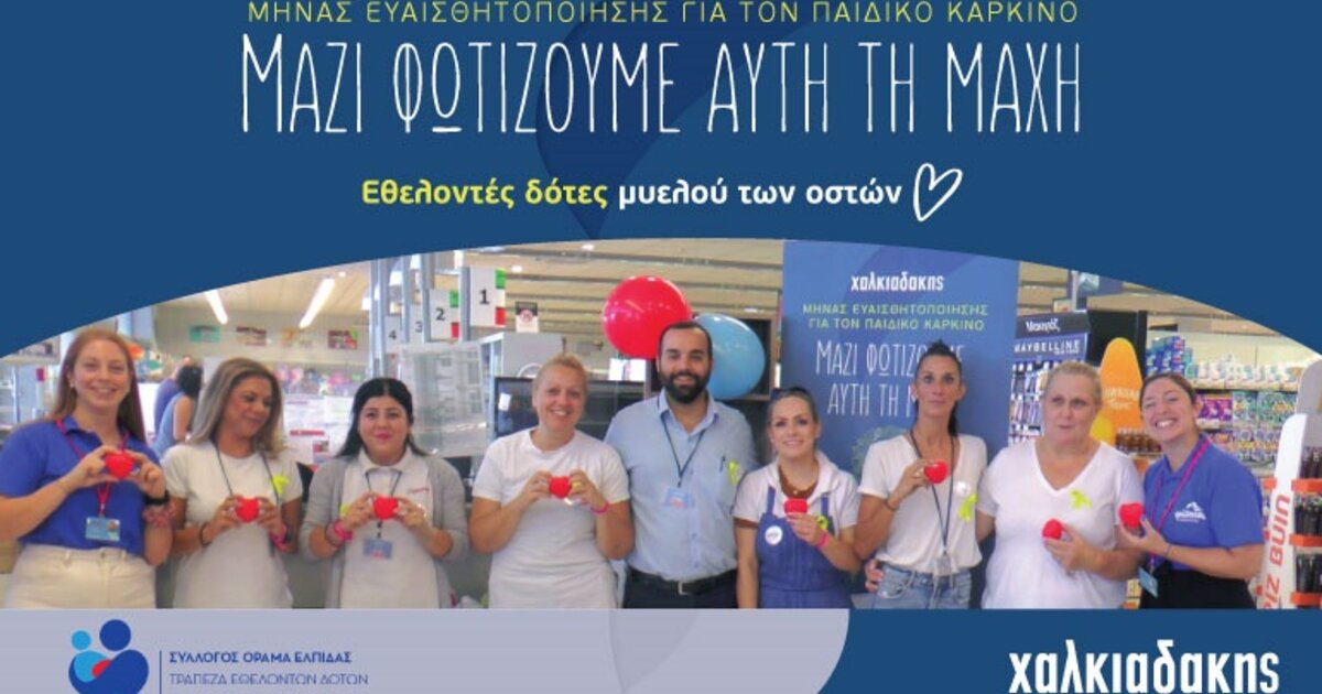 Πάνω από 100 νέοι εθελοντές εγγράφηκαν ως δότες μυελού των οστών κατά τη διάρκεια των τριήμερων δράσεων ευαισθητοποίησης για τον καρκίνο στην παιδική ηλικία που διοργανώθηκαν από την Χαλκιαδάκης Α.Ε..